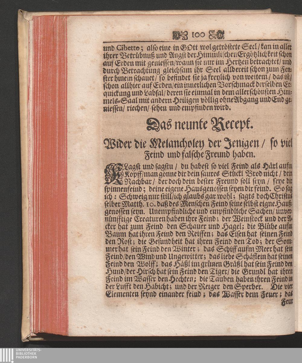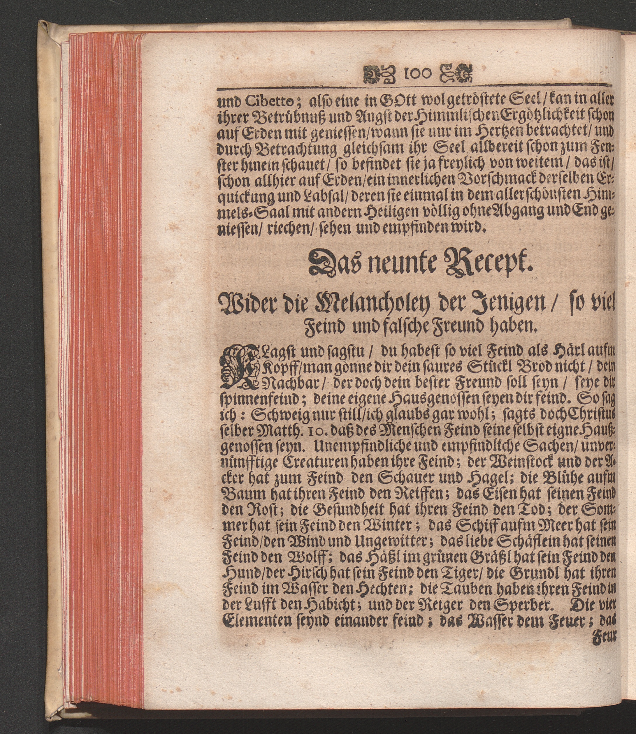 Das 9. Recept. Für die Melancholey der Jenigen / die viel Feind und falsche Freund[...]