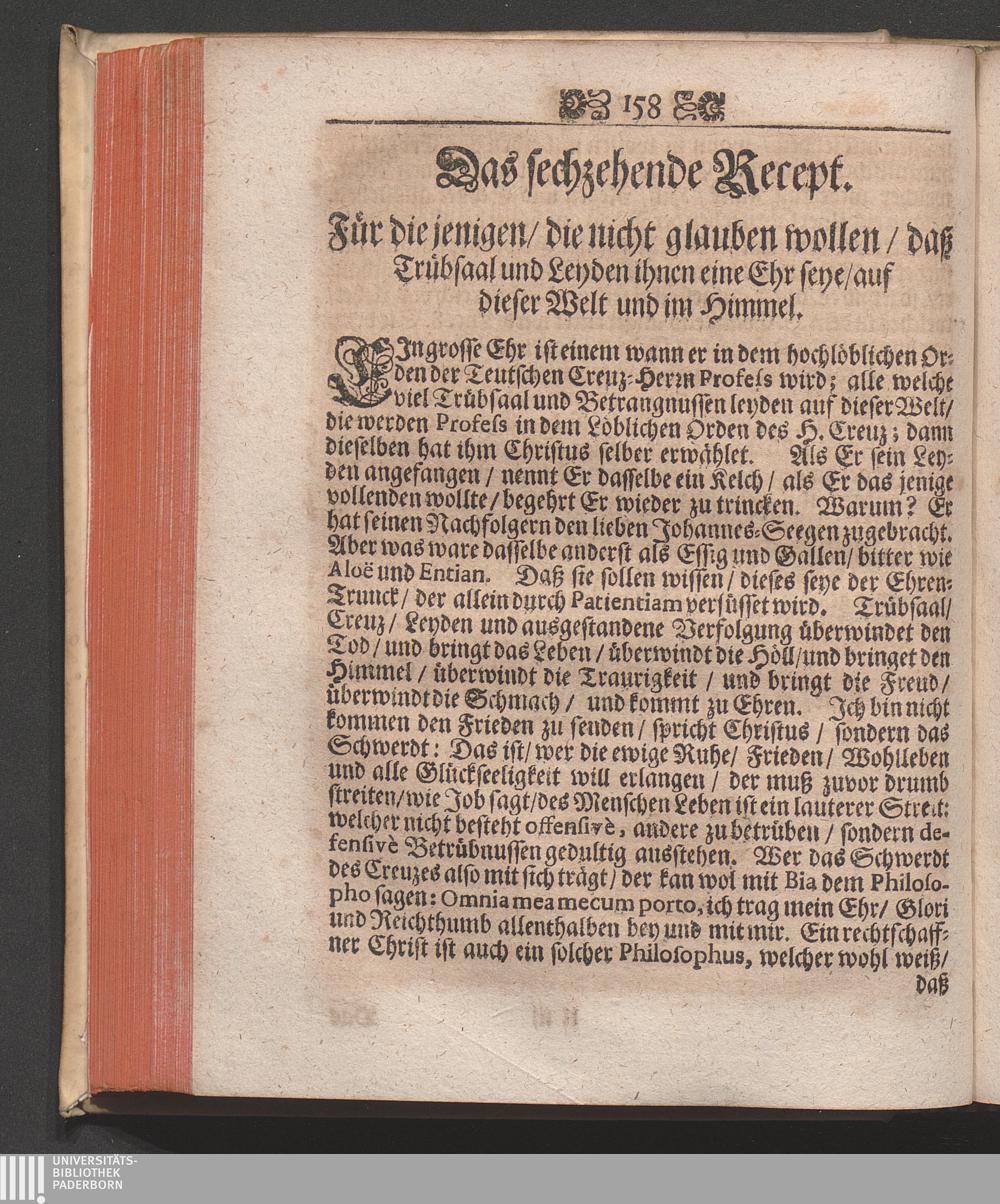 Das 16. Recept. Für die Jenigen / die nicht glauben wollen / daß Trübsal und Leyden[...]