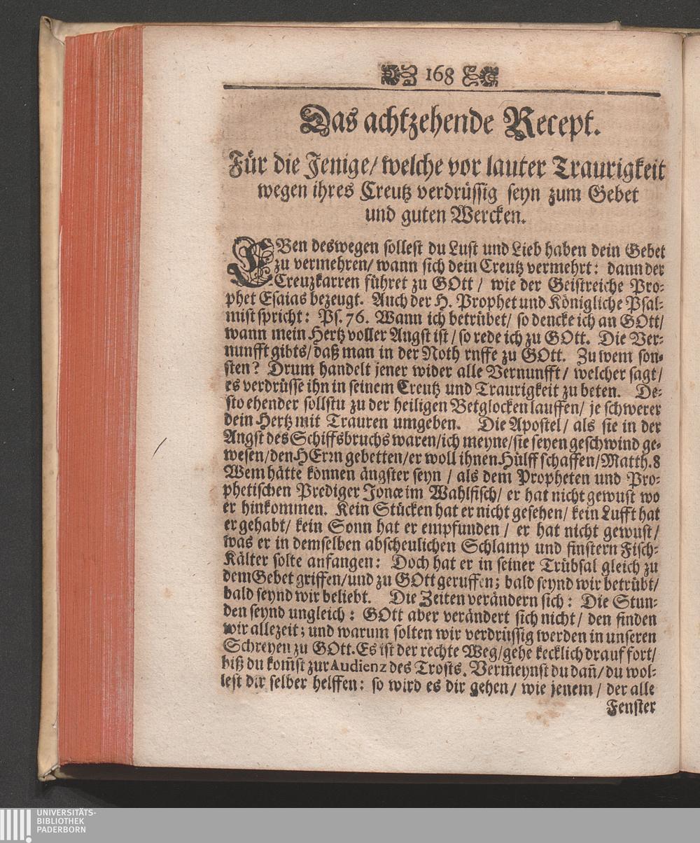 Das 18. Recept. Für die Jenige / welche vor lauter Traurigkeit wegen ihres Creutzes[...]