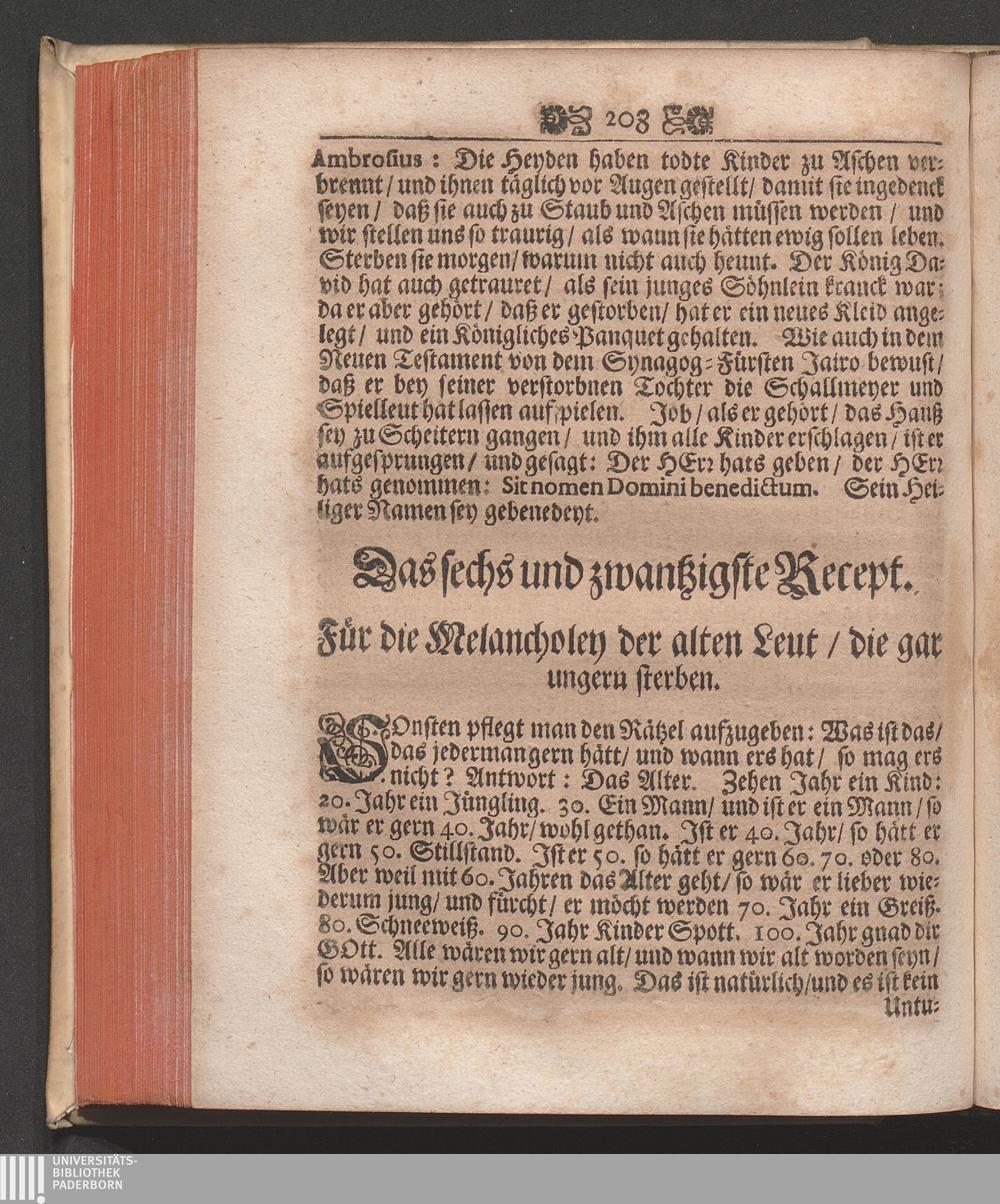 Das 26. Recept. Für die Melancholey der alten Leuten / die gar ungern sterben.