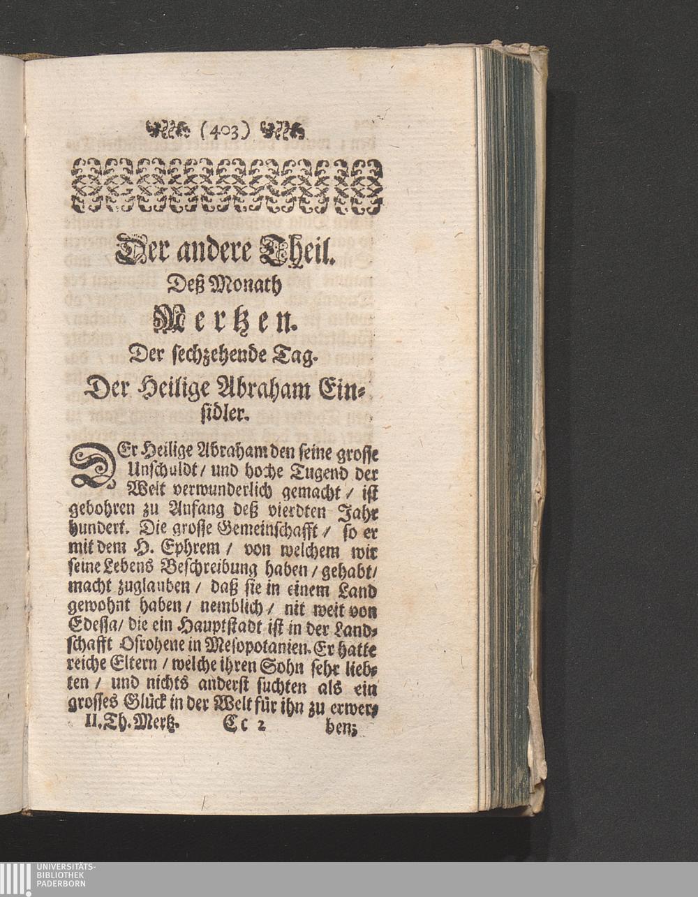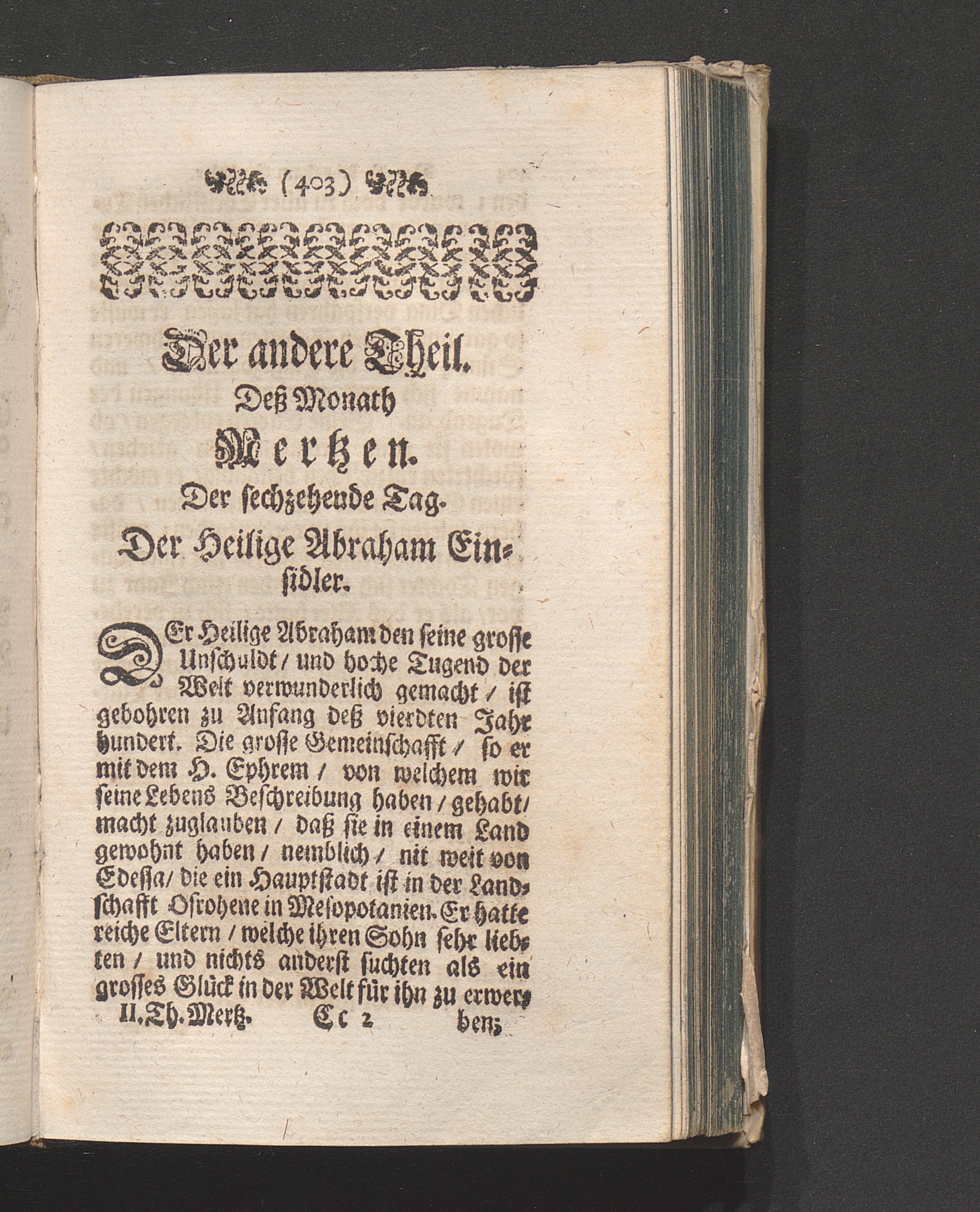 Der 16. Tag. Der H. Abraham Einsidler. Betrachtung. Was für ein Ubel seye unbereit[...]