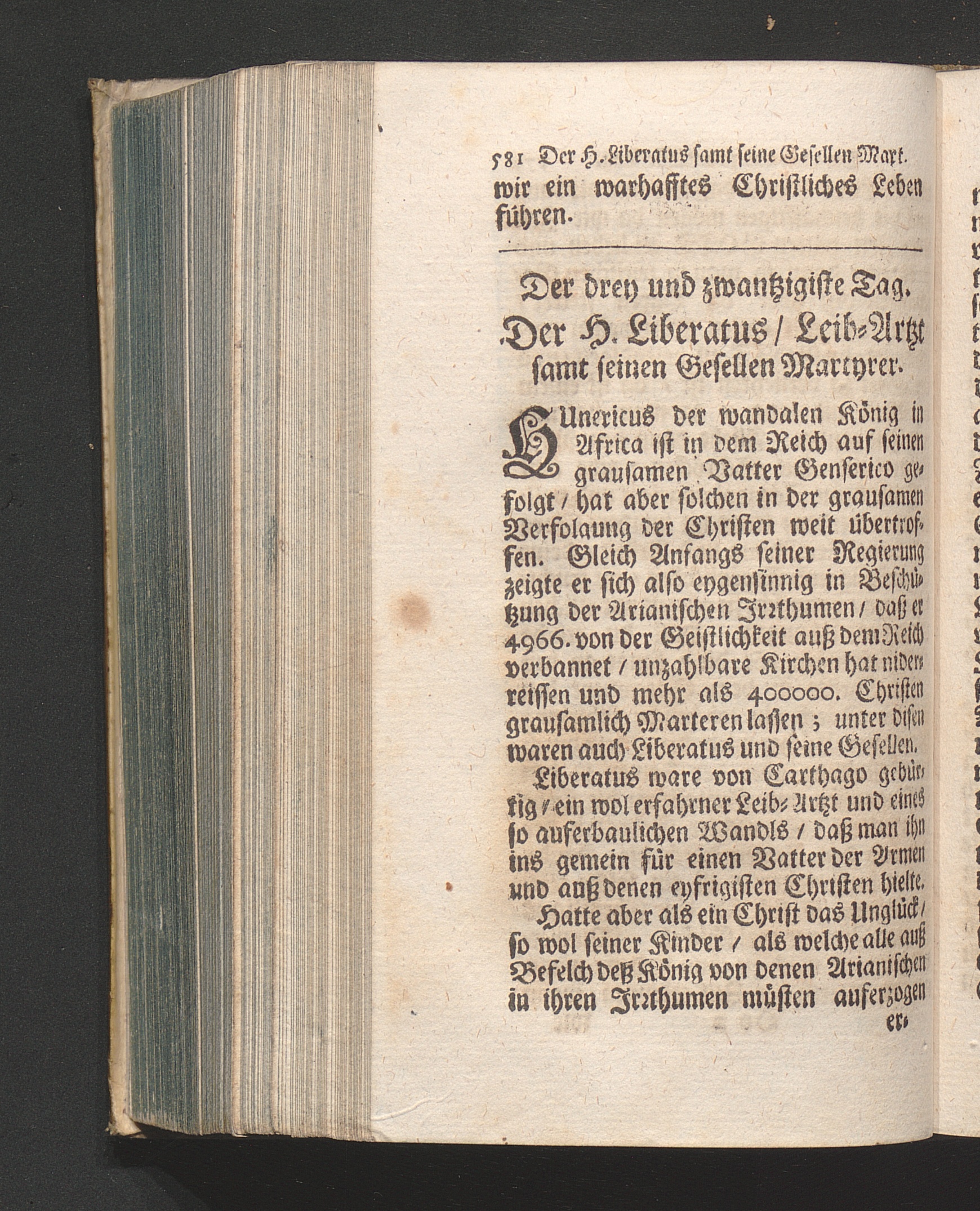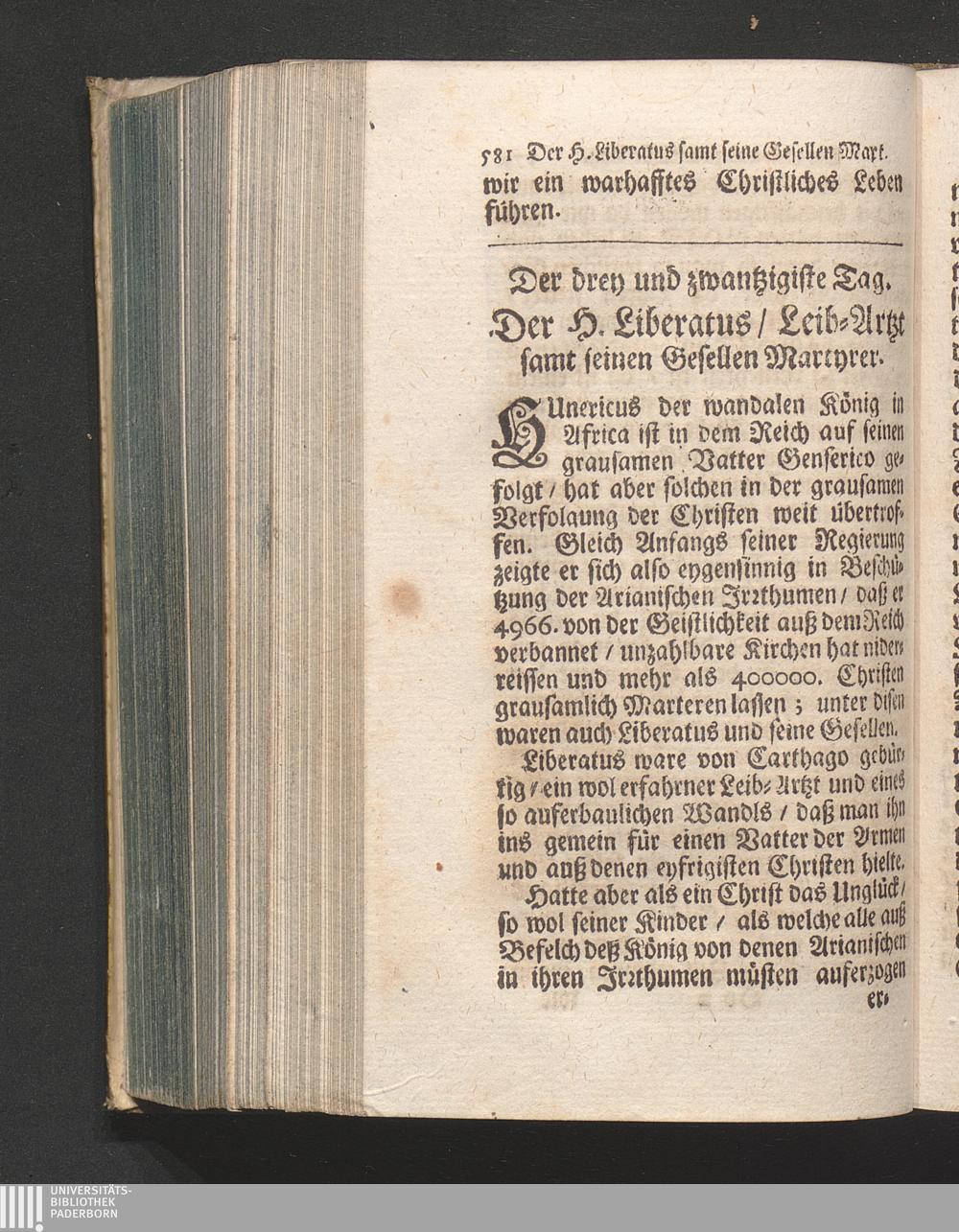 23. Tag. Der H. Liberatus sambt seinen Gesellen Mart. Betrachtung. Von denen Verfolgungen[...]