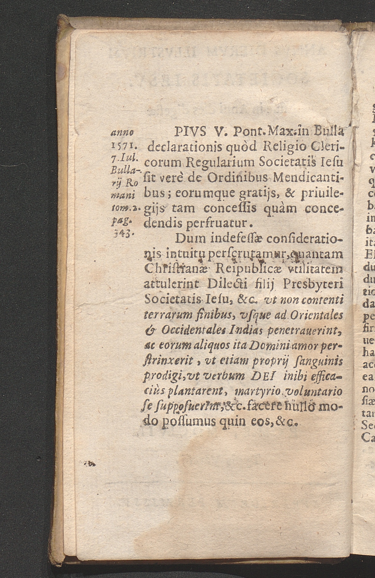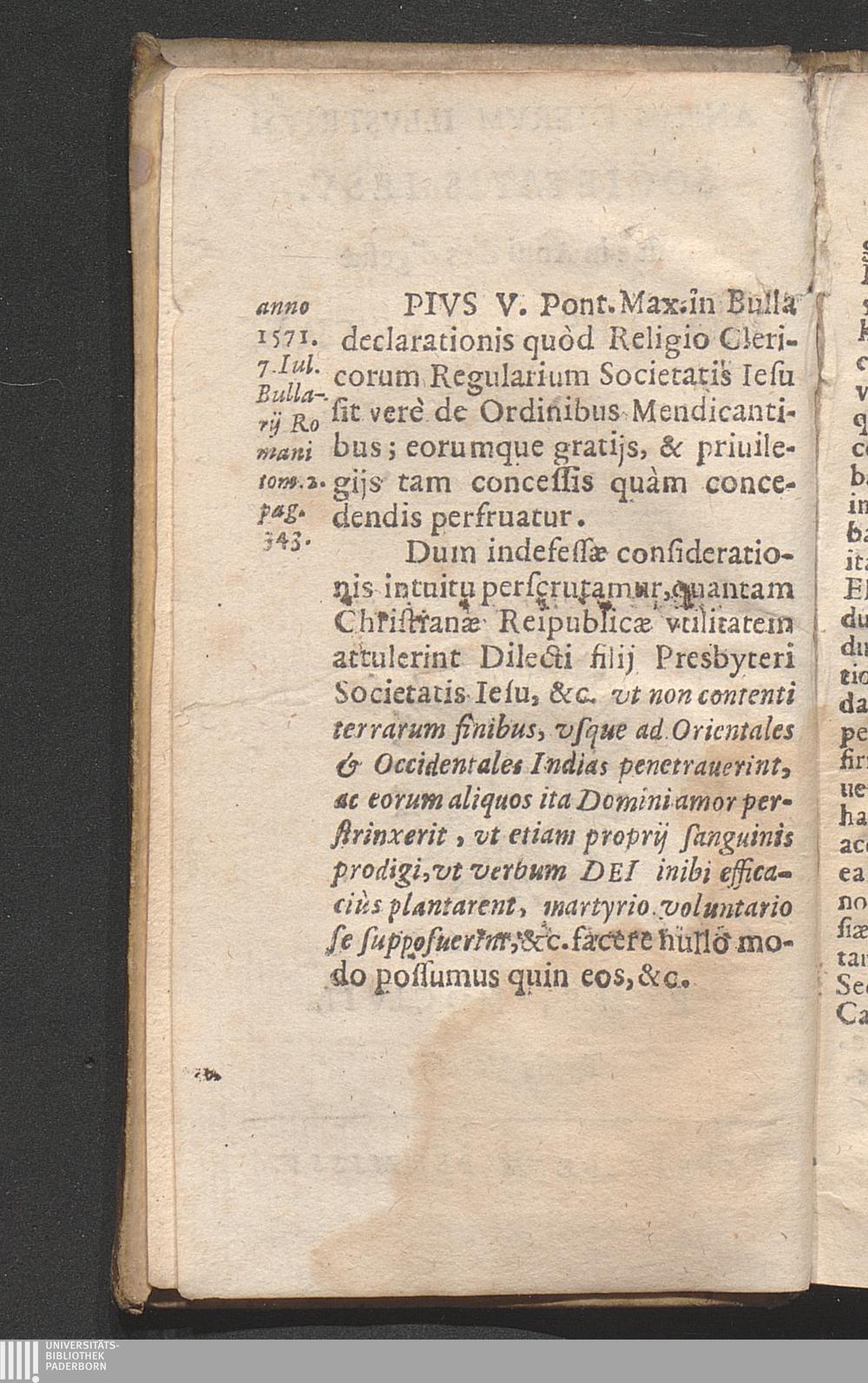 Pivs V. Pont. Max. in Bulla declarationis ...