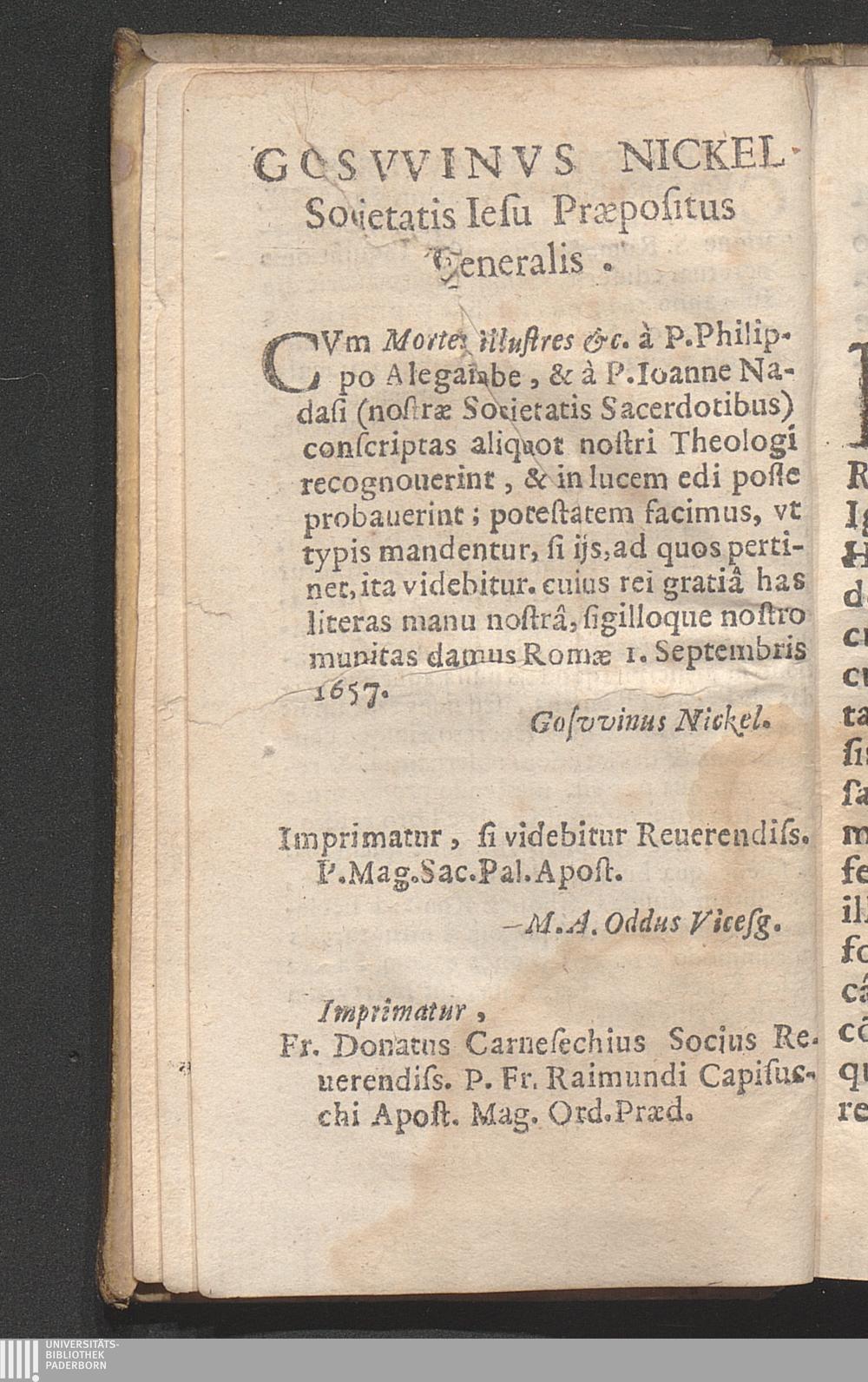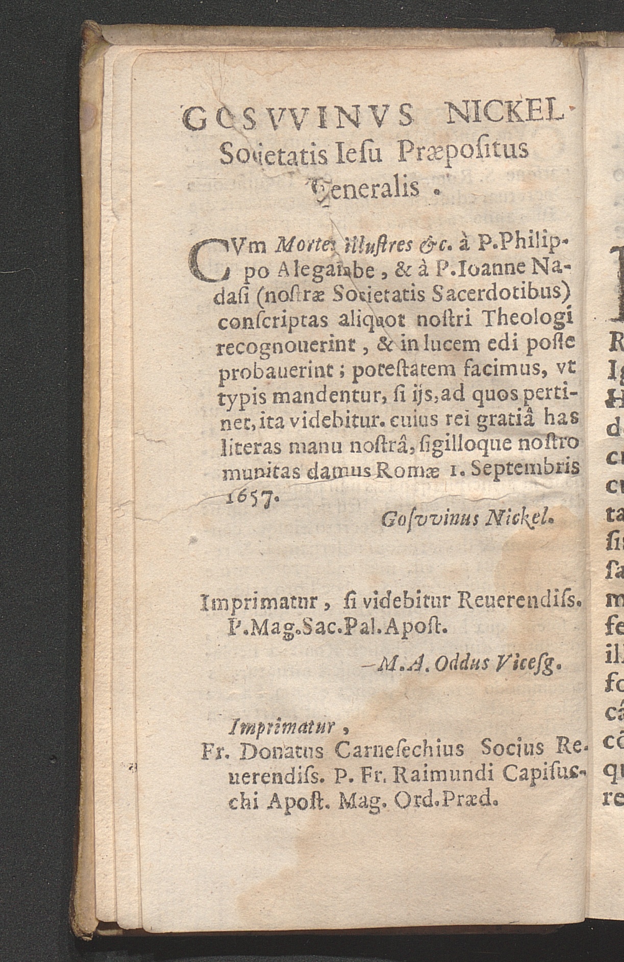 Gosvvinvs Nickel Societatis Iesu Præpositus Generalis.