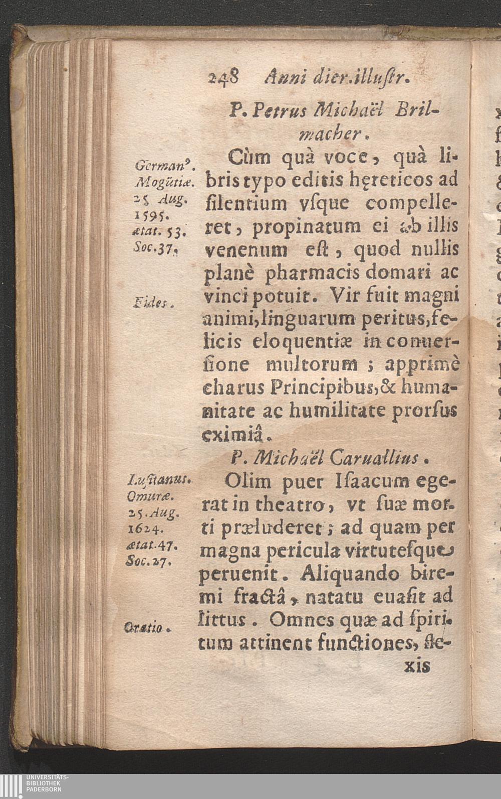 Annvs Diervm Illvstrivm Societatis Iesv. siue in Anni dies digestæ Mortes Illvstres Eorum qui ex eadem Soc. Iesu, in odium fidei, pietatis, &c. ... confecti sunt / [Ioannes Nadasi]