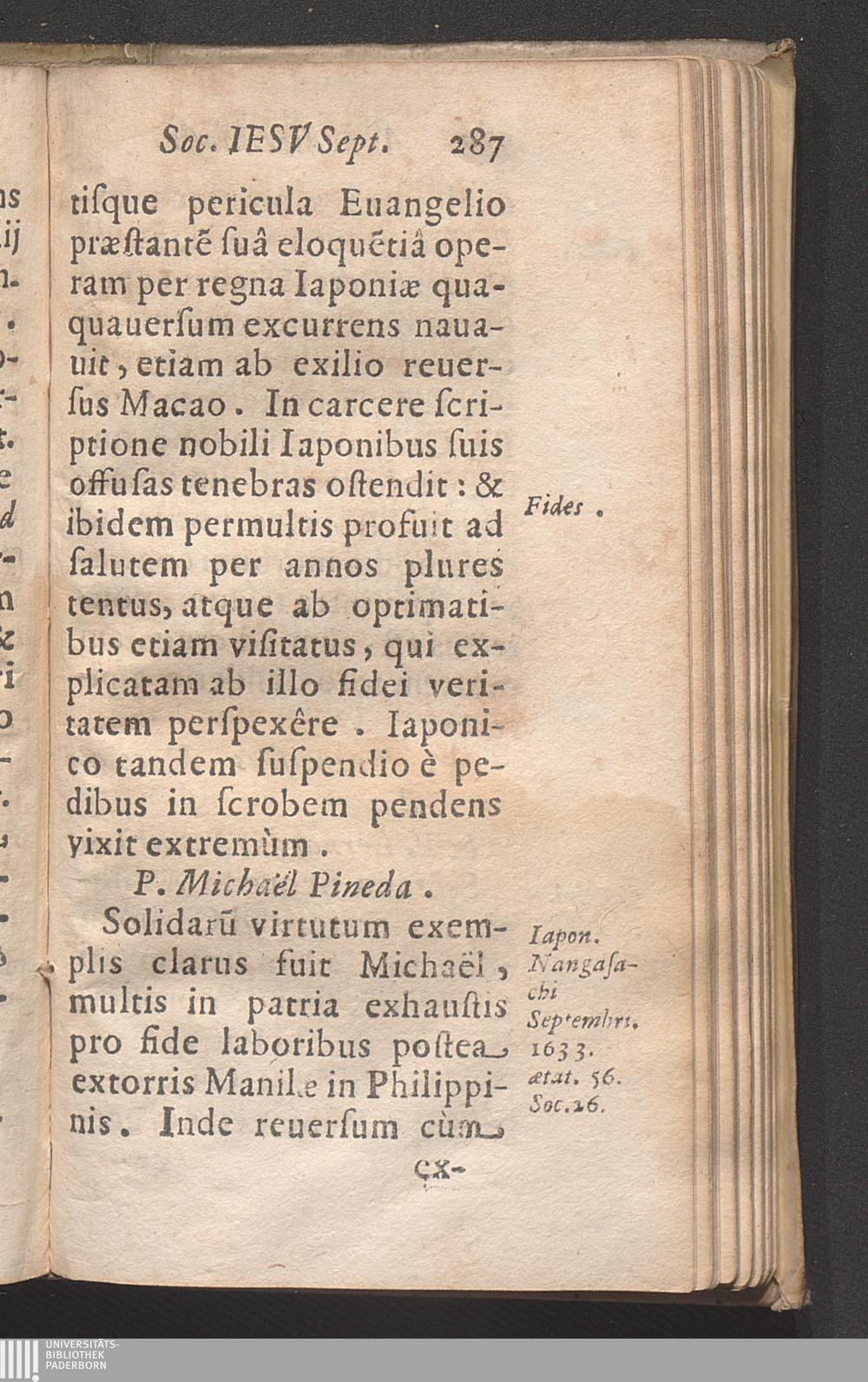 Annvs Diervm Illvstrivm Societatis Iesv. siue in Anni dies digestæ Mortes Illvstres Eorum qui ex eadem Soc. Iesu, in odium fidei, pietatis, &c. ... confecti sunt / [Ioannes Nadasi]