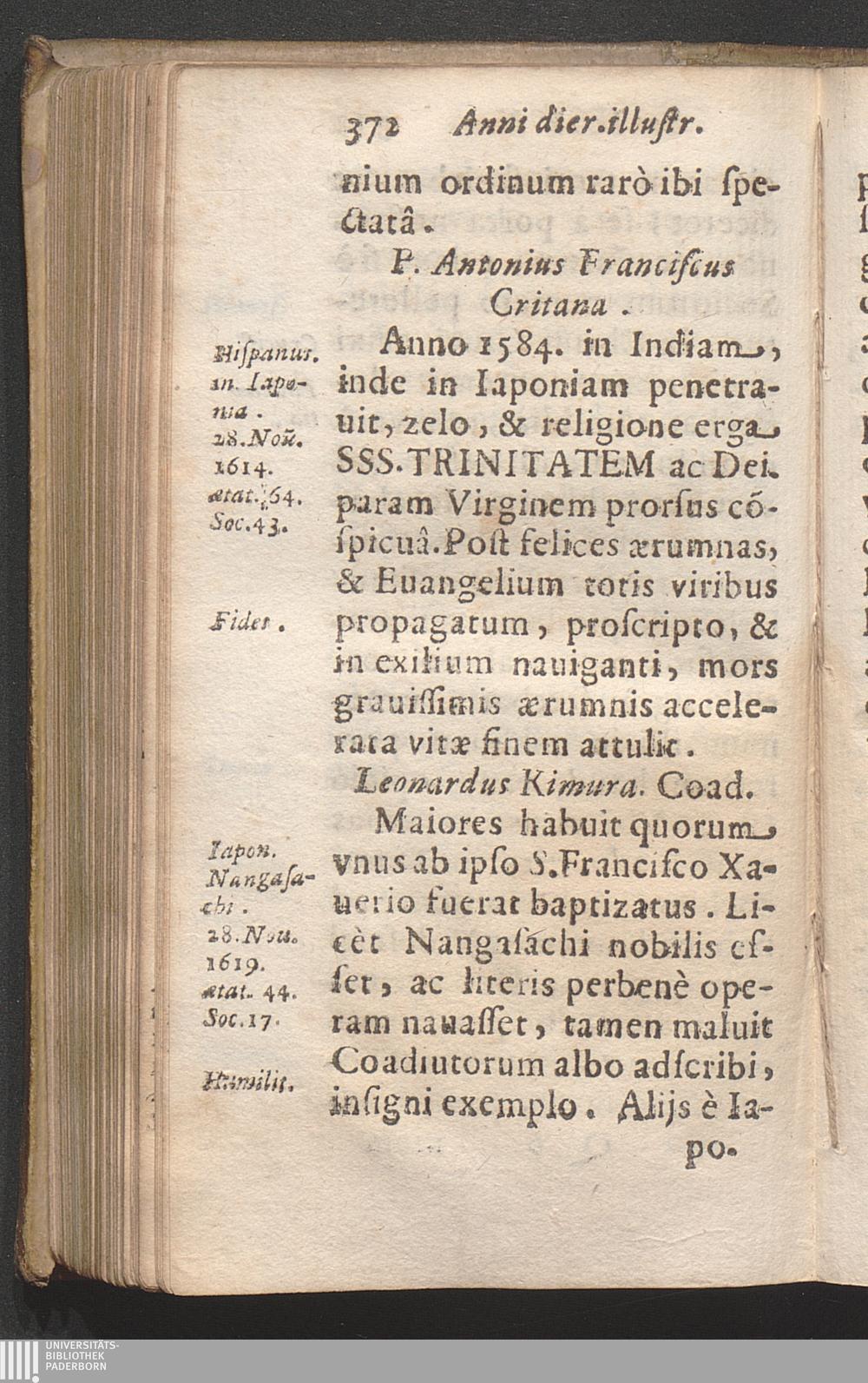 Annvs Diervm Illvstrivm Societatis Iesv. siue in Anni dies digestæ Mortes Illvstres Eorum qui ex eadem Soc. Iesu, in odium fidei, pietatis, &c. ... confecti sunt / [Ioannes Nadasi]