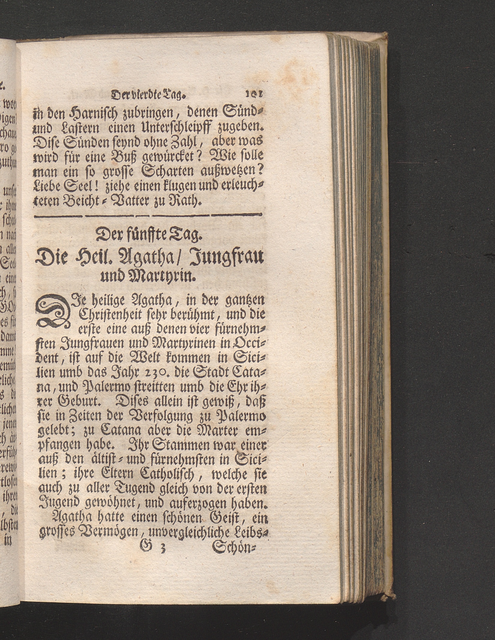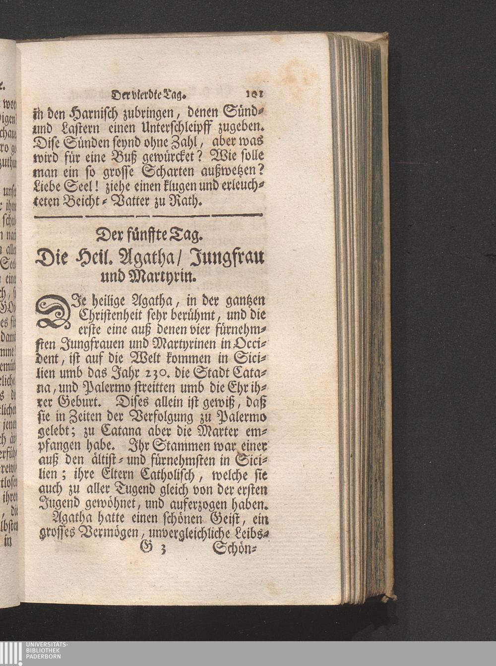 5. Tag. Die heilige Agatha Jungfrau und Mart. Betrachtung von den Grund-Warheiten[...]