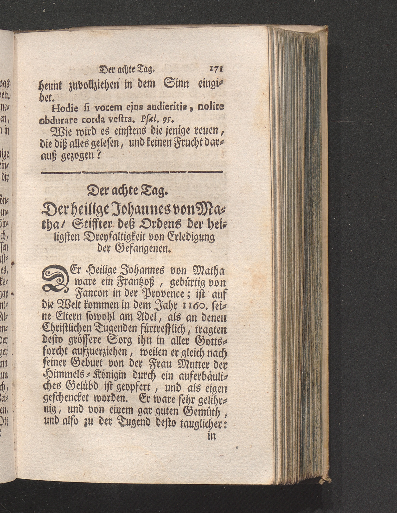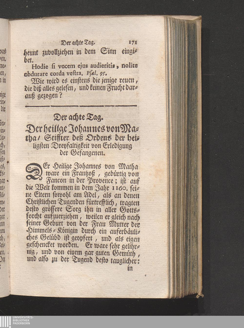 8. Tag. Der H. Johannes von Matha Beichtiger. Betrachtung von der schnellen Beke[...]