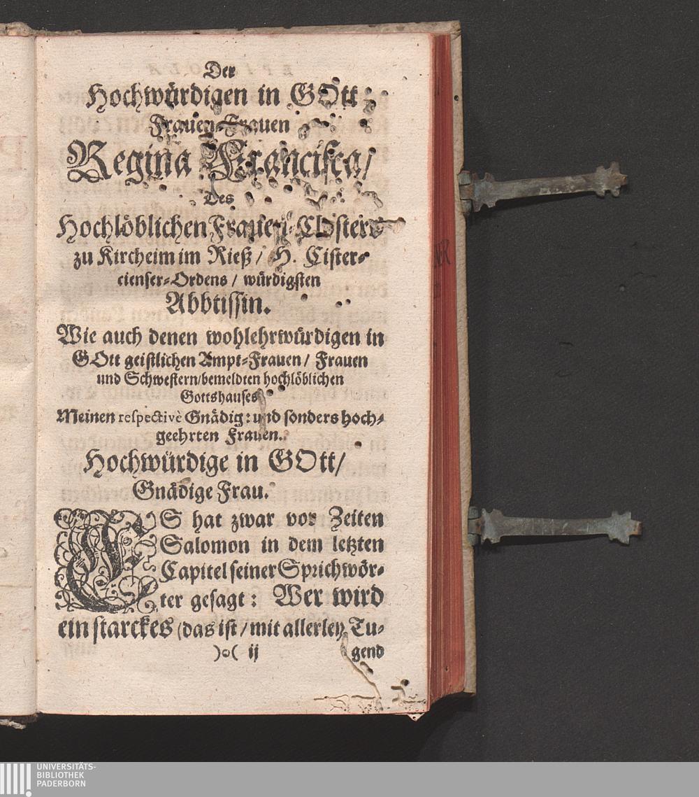 Der hochwürdigen in Gott Frauen / Frauen Regina Francisca / Des hochlöblichen Frauen[...]
