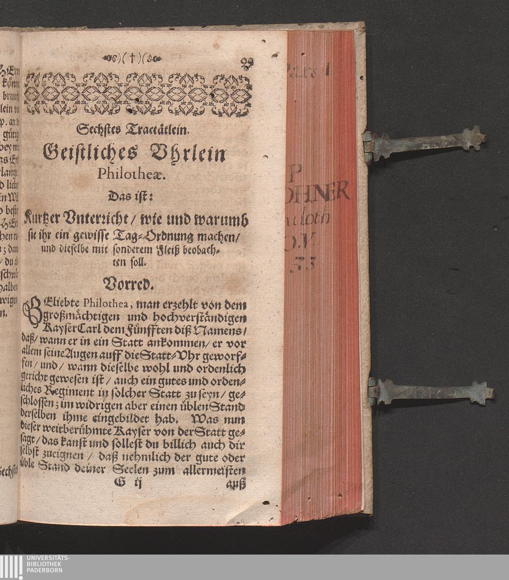 Sechstes Tractätlein. Geistliches Vhrlein Philotheæ, das ist / kurtzer Vnterricht[...]