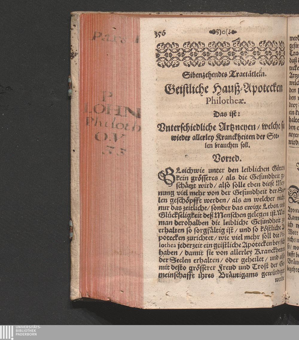 Siebenzehendes Tractätlein. Geistliche Hauss-Apothecken Philotheæ, das ist / unterschiedliche[...]