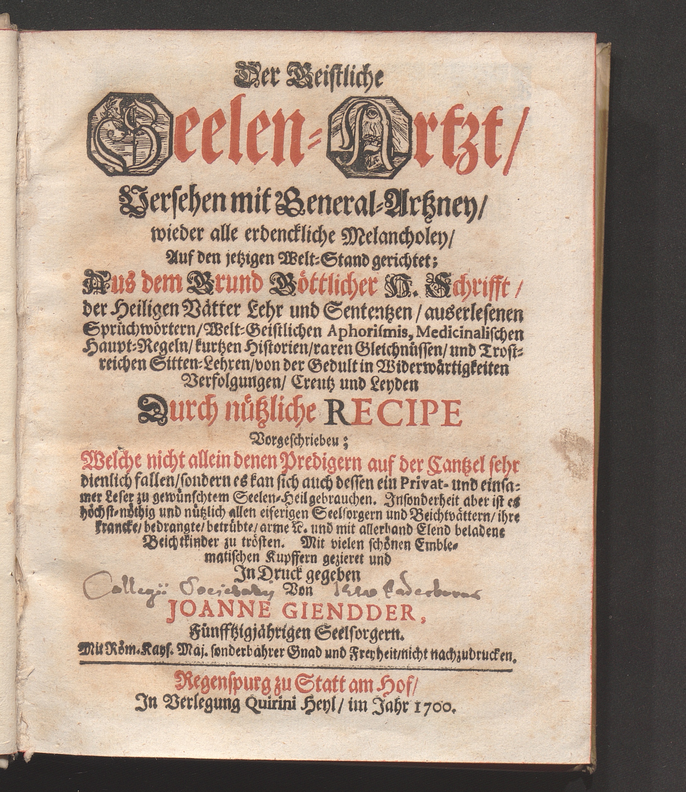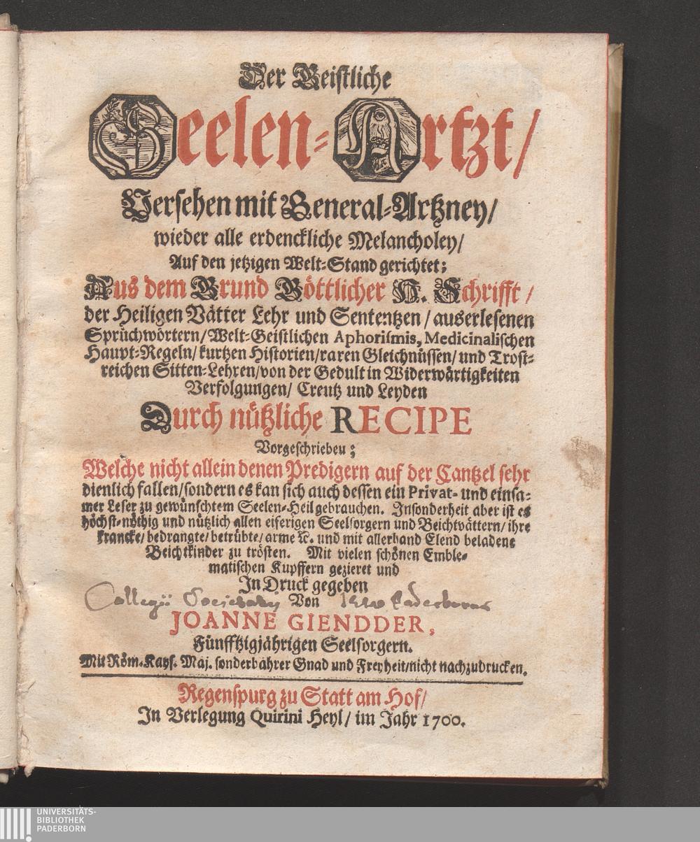 Der Geistliche Seelen-Artzt/ Versehen mit General-Artzney/ wieder alle erdenckliche[...]