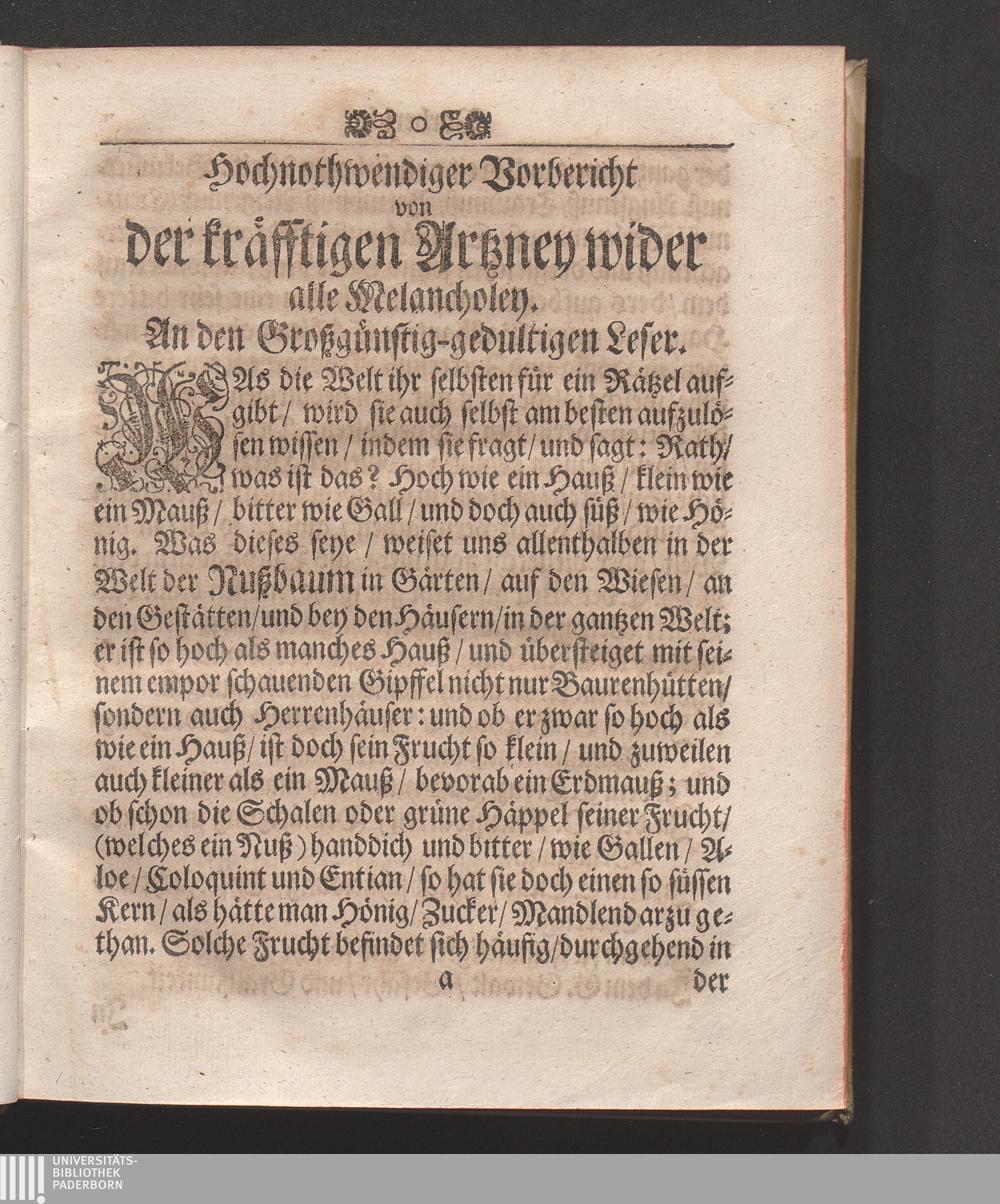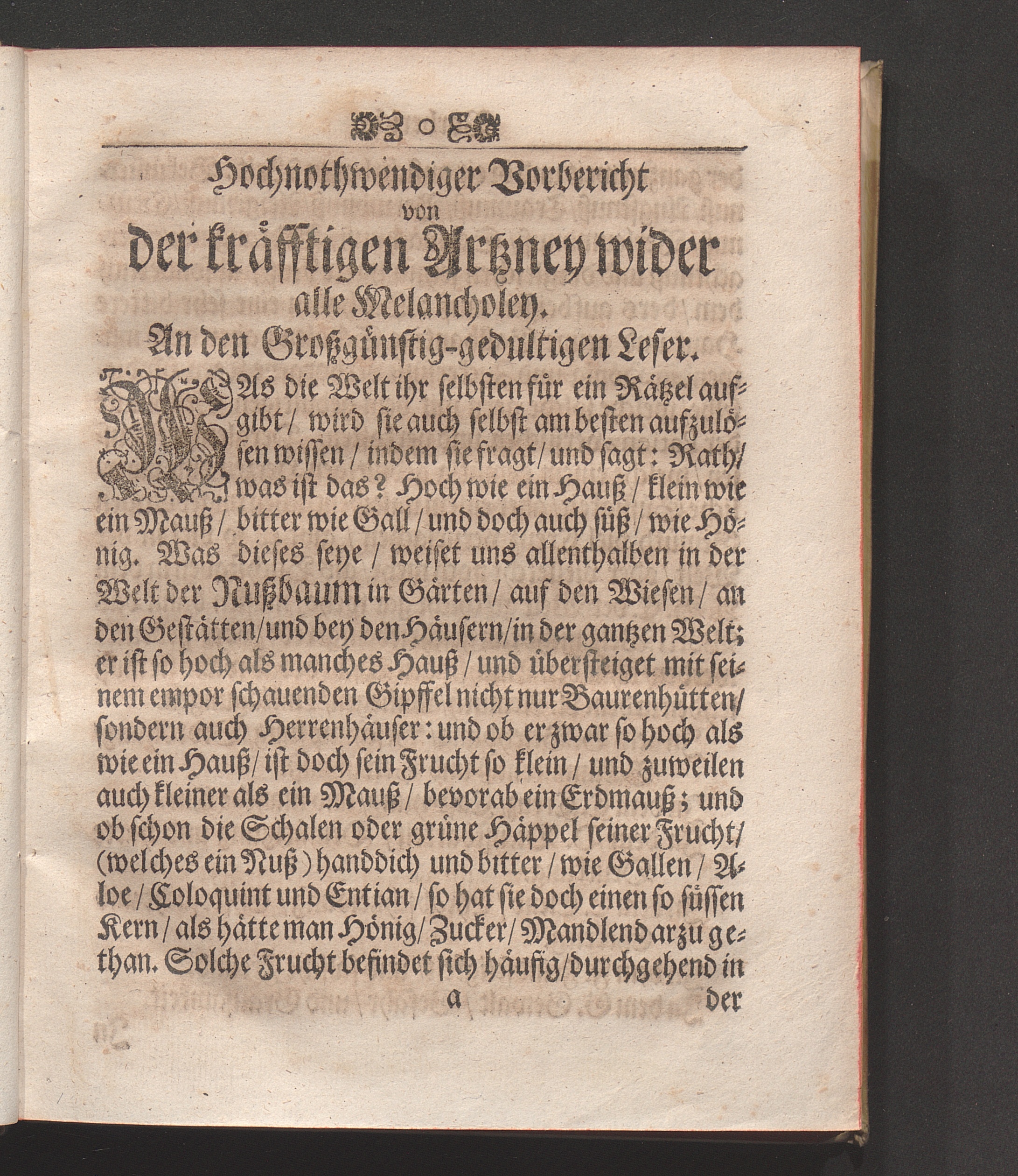 Hochnothwendiger Vorbericht von der kräfftigen Artzney wider alle Melancholey. An[...]