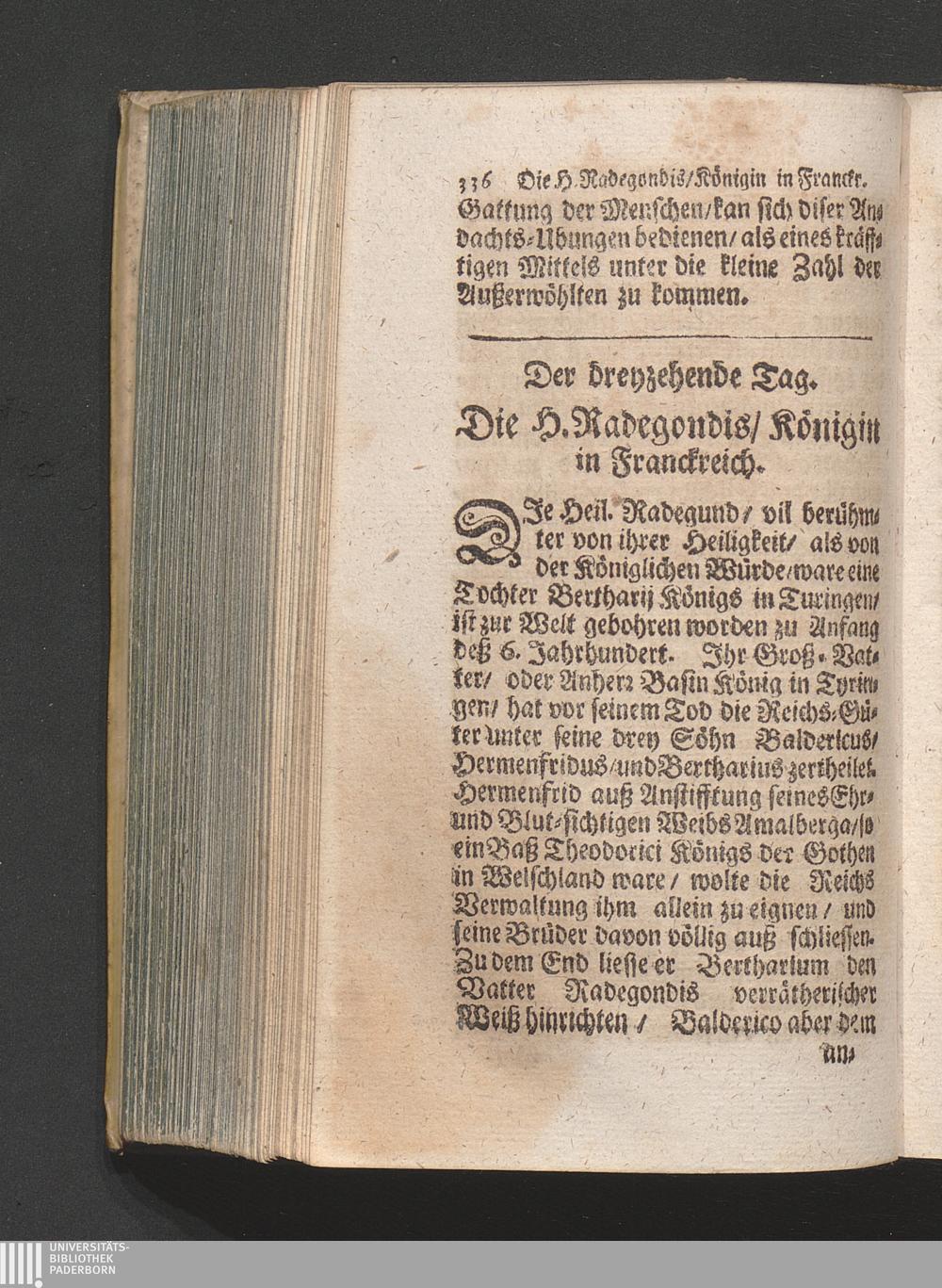 13. Tag. Die H. Radegundis Königin in Franckreich. Betrachtung von dem weichen L[...]