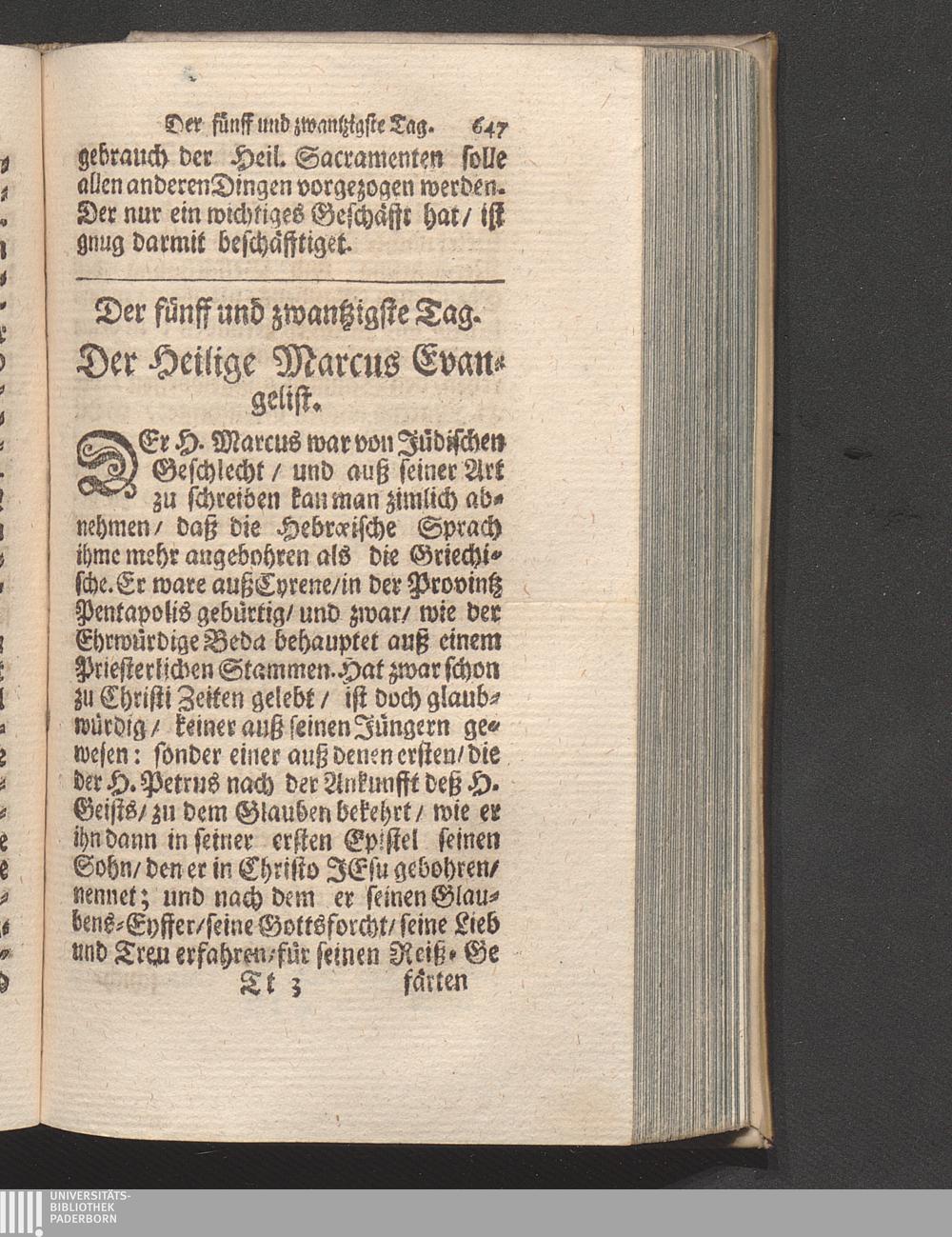 25. Tag. Der H. Marcus der Evangelist. Betrachtung. Von dem Wort Gottes/ wie man[...]