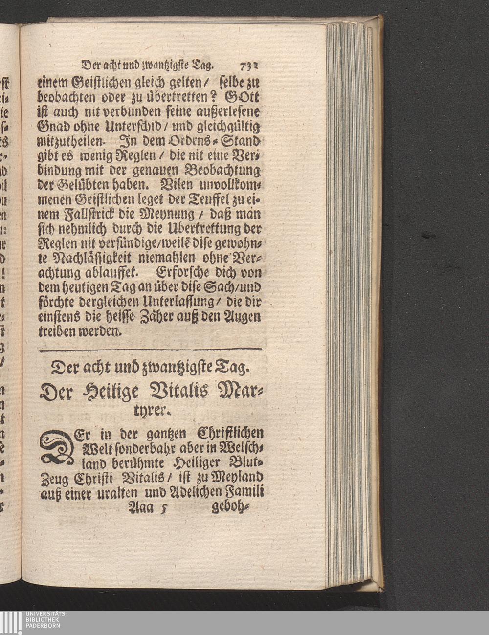 28. Tag. Der H. Vitalis Martyrer. Betrachtung von der ewigen Wehrung der höllischen[...]