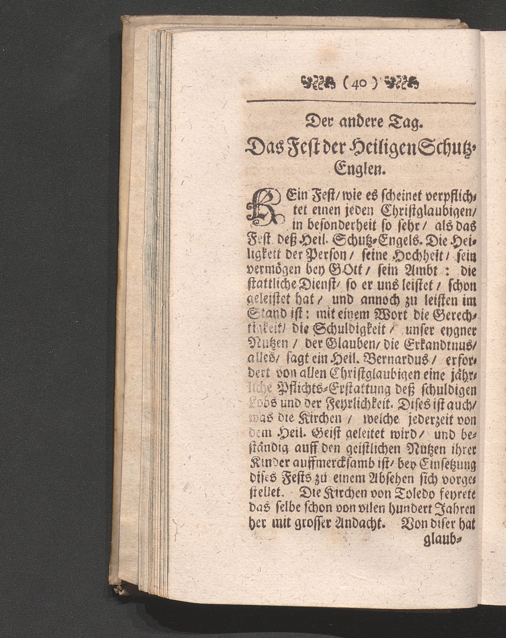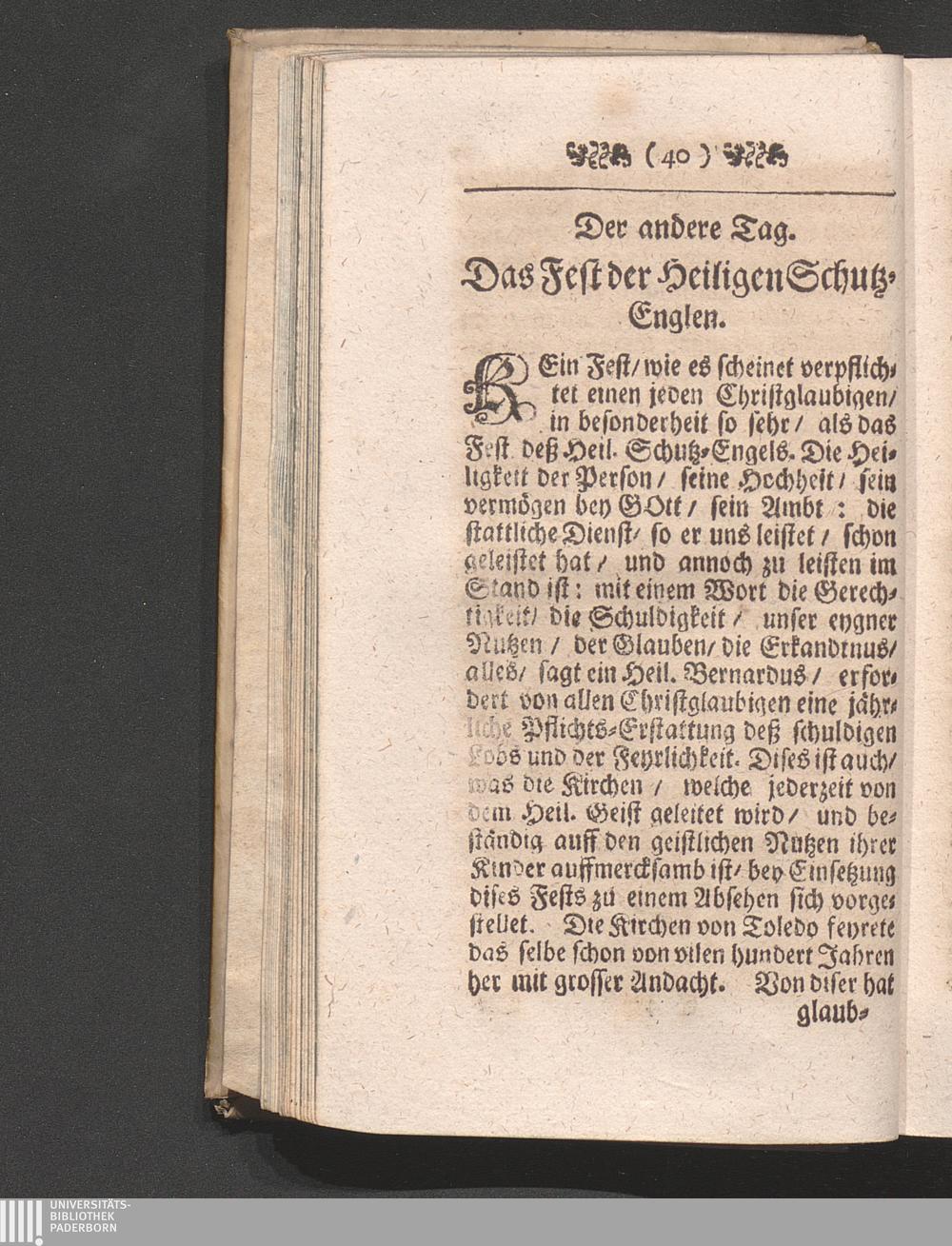 2. Tag. Das Fest deß Heil. Schutz-Engels. Betrachtung von der Andacht zu dem sel[...]