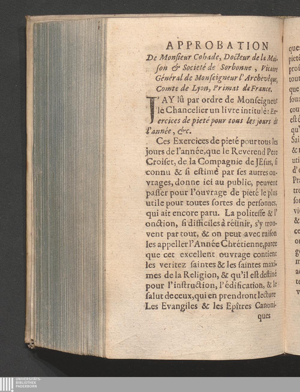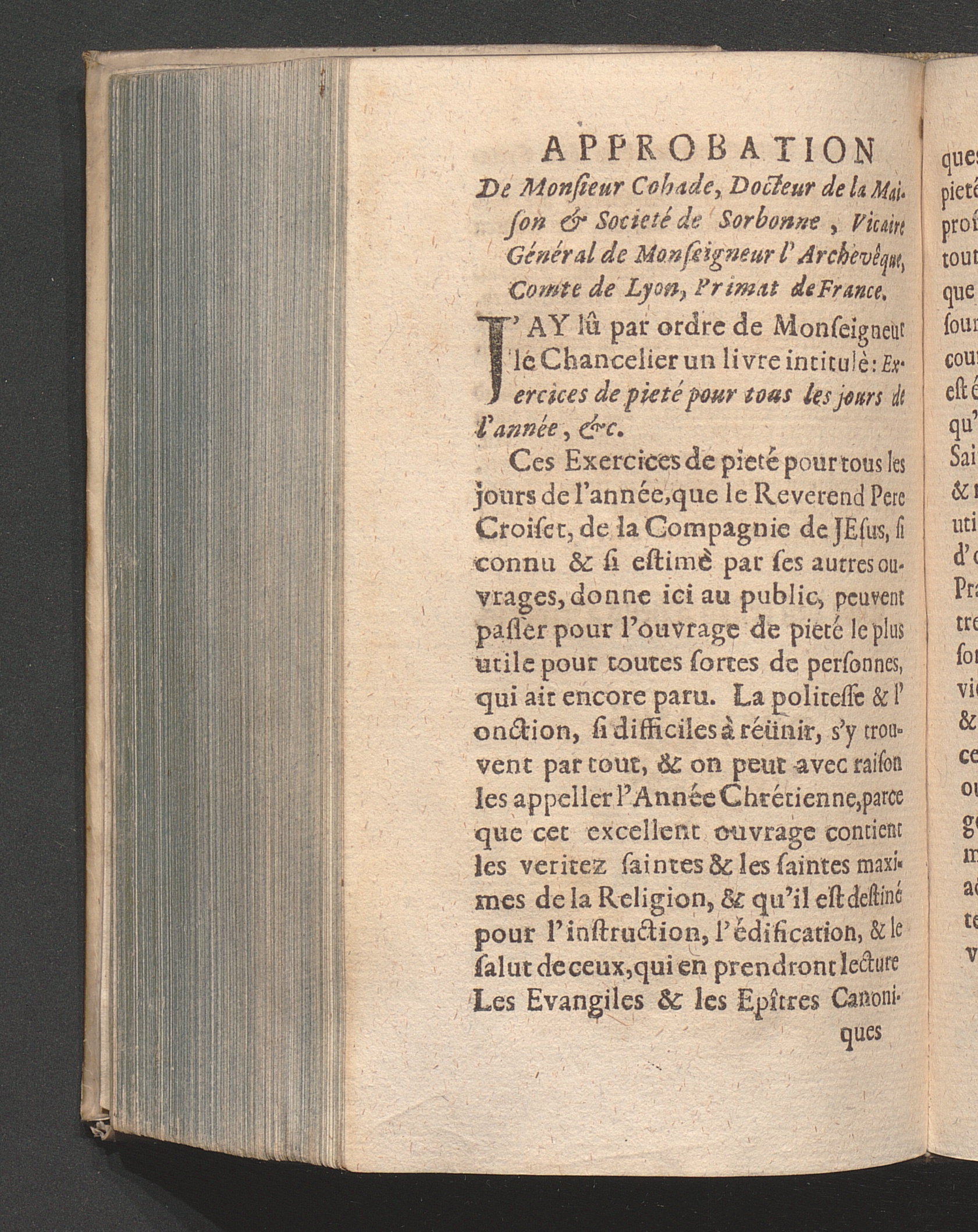 Approbation De Monsieur Cohade, Docteur de la Maison & Societé de Sorbonne, Vicaire[...]