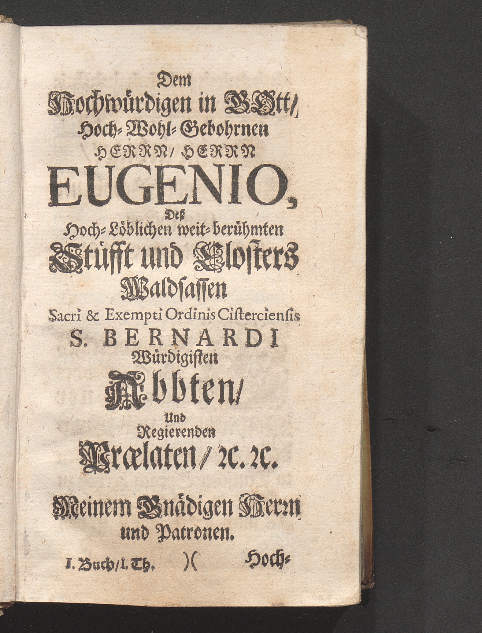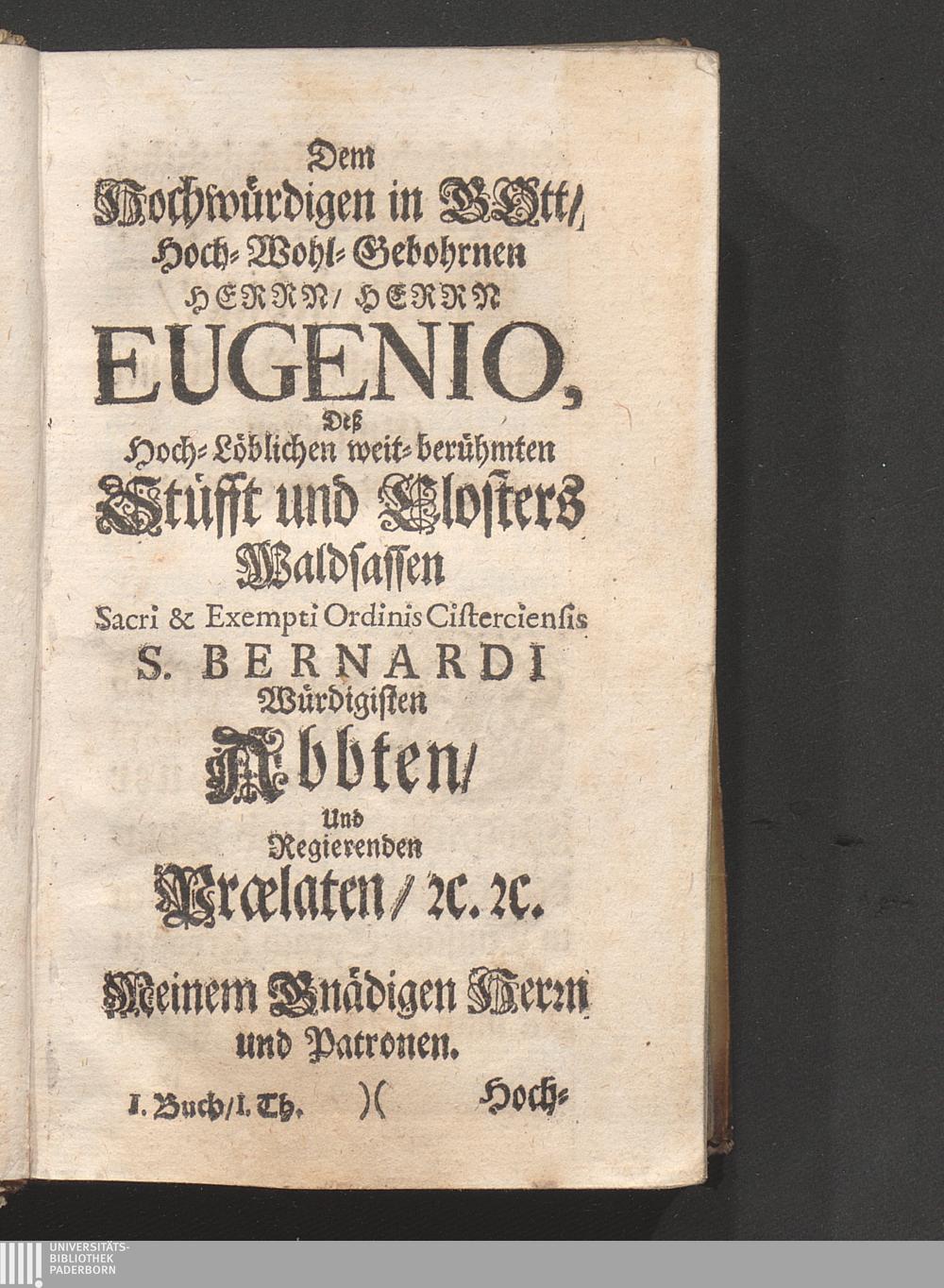 Dem Hochwürdigen in Gott/ Hoch-Wohl-Gebohrnen Herrn/ Herrn Eugenio, Deß Hoch-Löblichen[...]