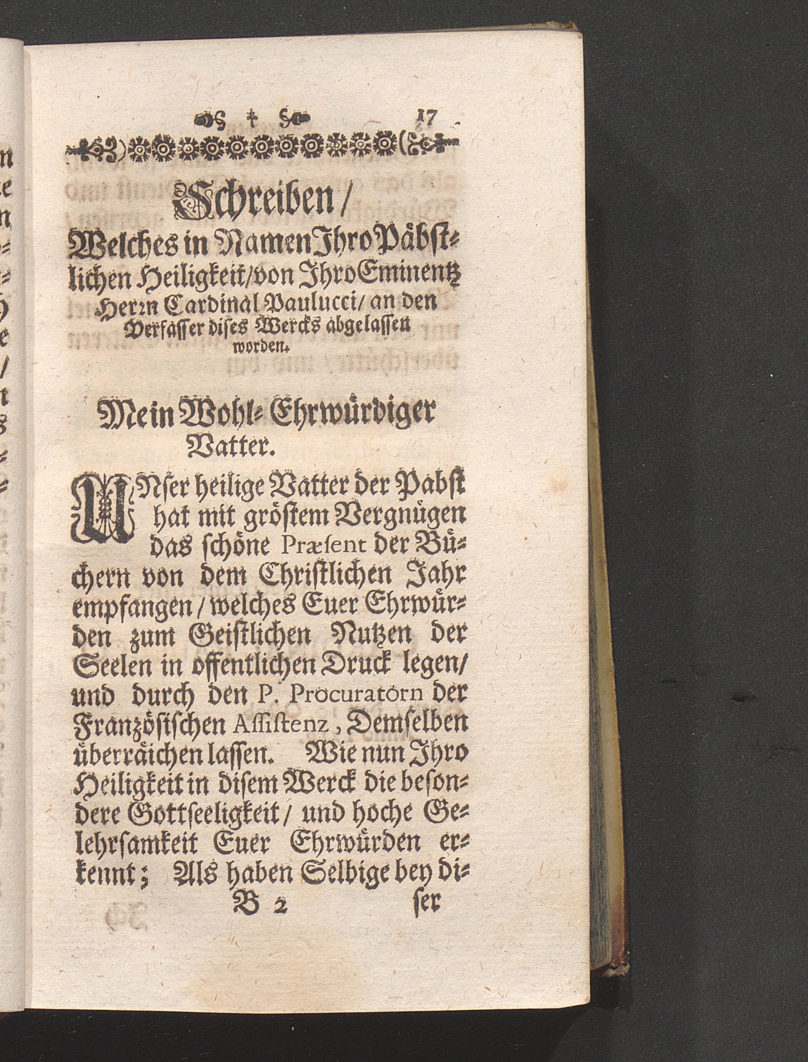 Schreiben/ Welches in Namen Jhro Päbstlichen Heiligkeit/ von Jhro Eminentz Herrn[...]