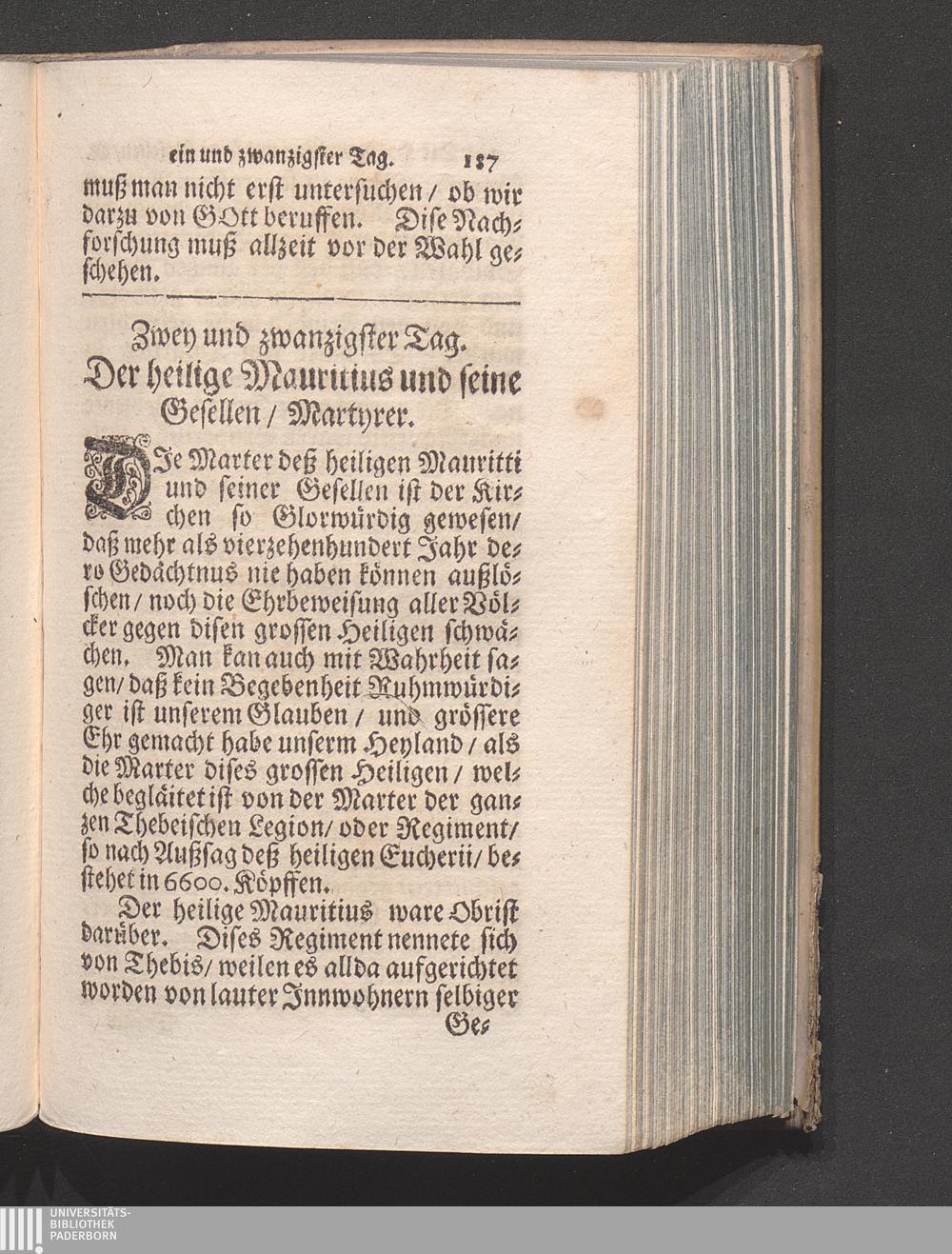 22. Tag. Der H. Mauritius und seine Gesellen/ Mart. Betrachtung/ es seye kein rechtes[...]