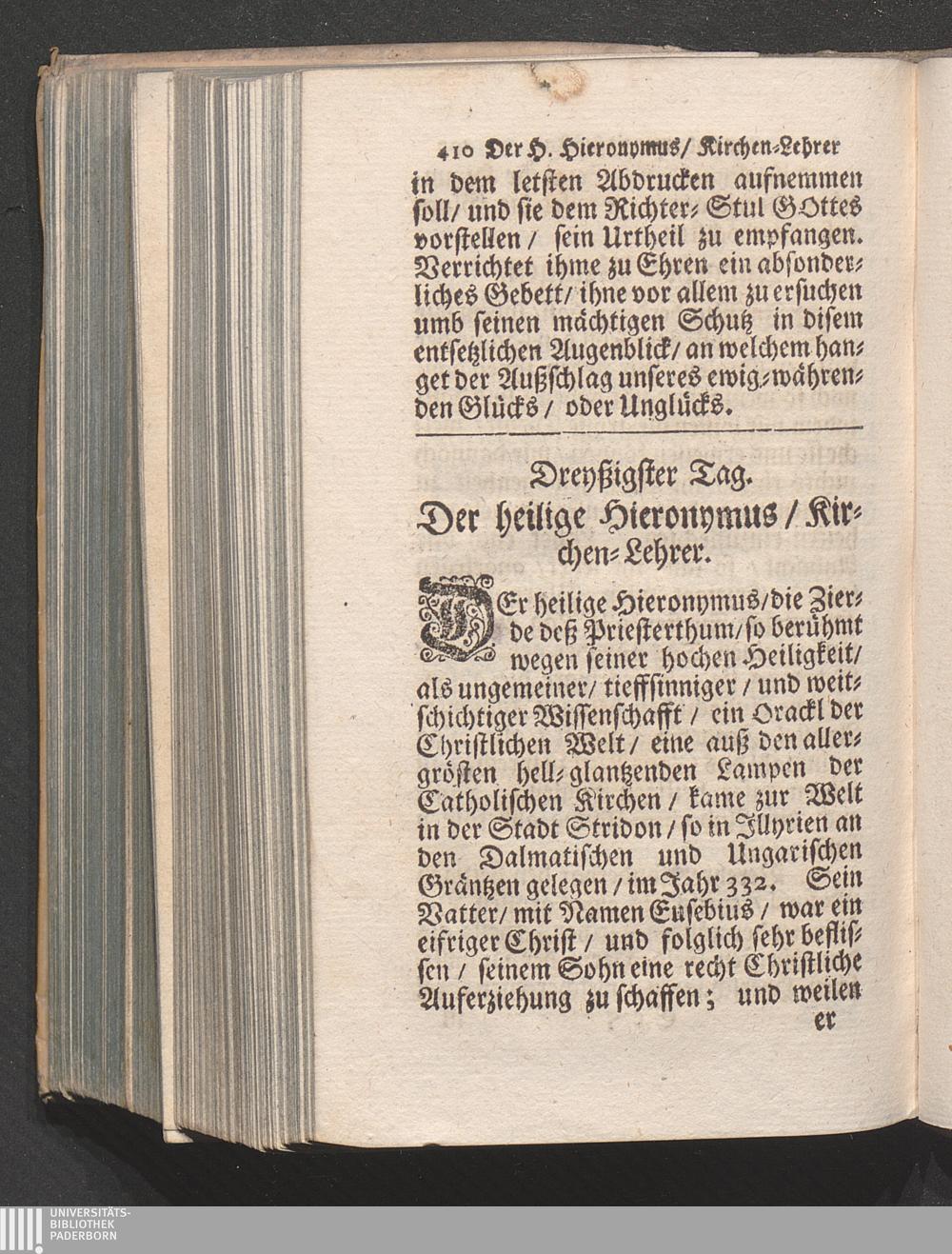 30. Tag. Der H. Hieronymus/ Kirchen-Lehrer. Betrachtung/ daß alles deme ring seye/[...]
