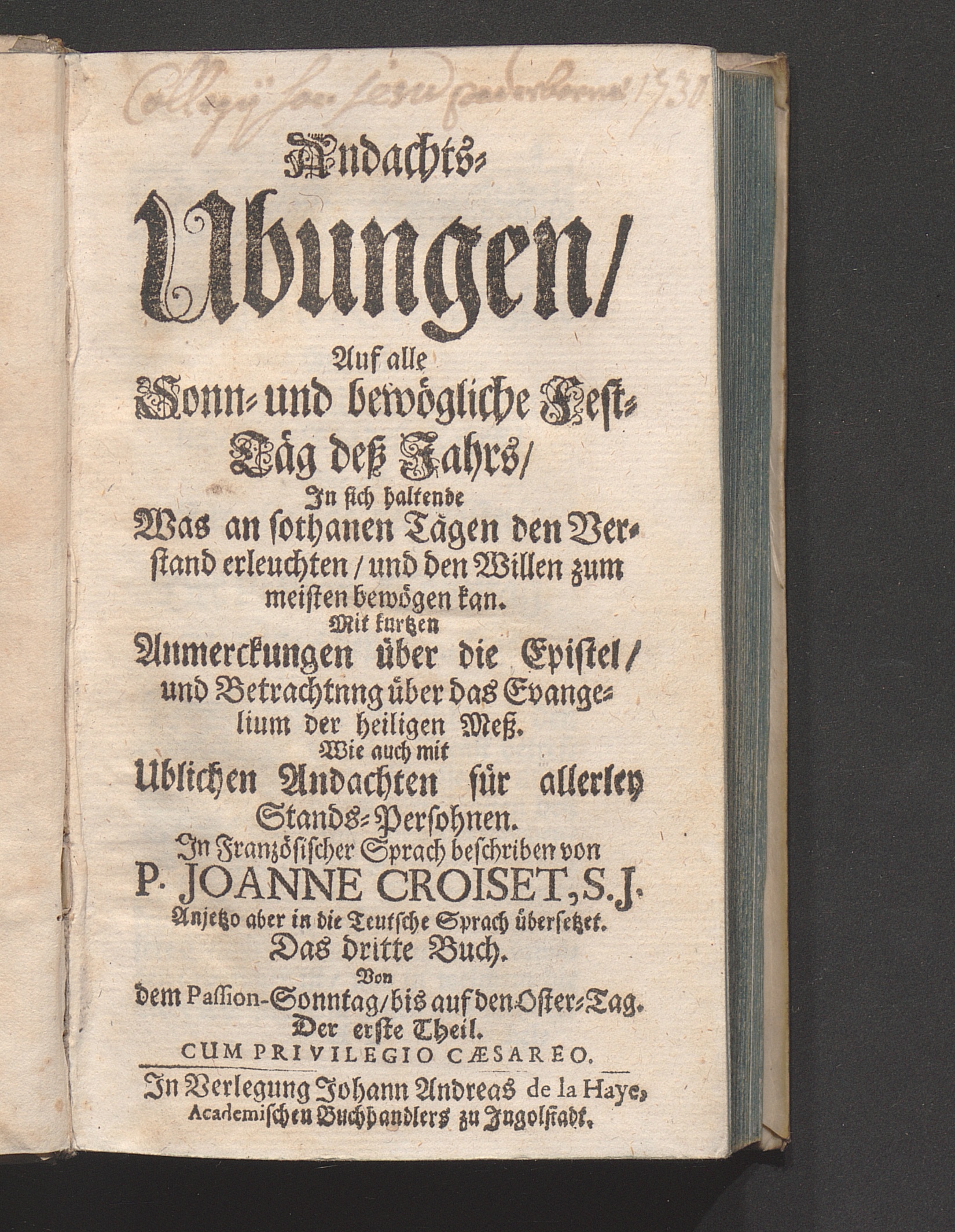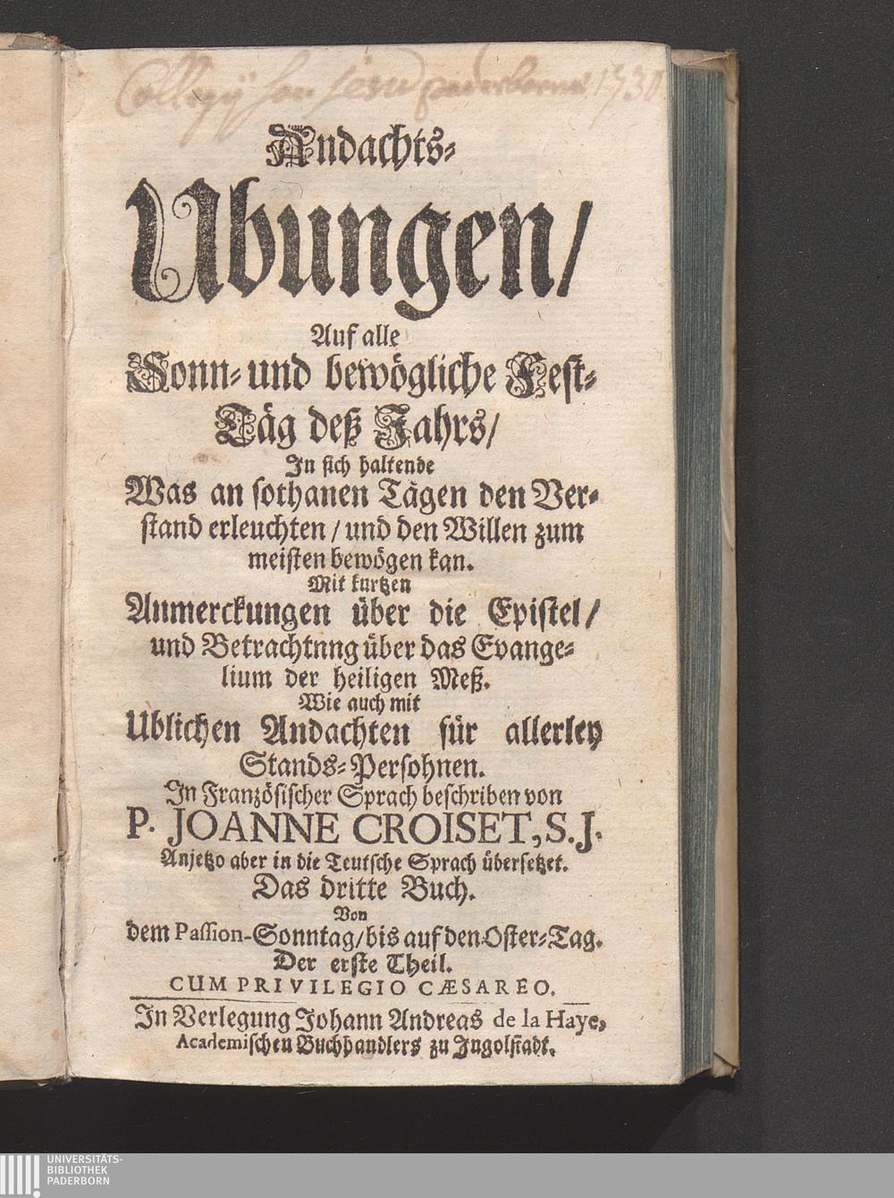 Andachts-Ubungen/ Auf alle Sonn- und bewögliche Fest-Täg deß Jahrs