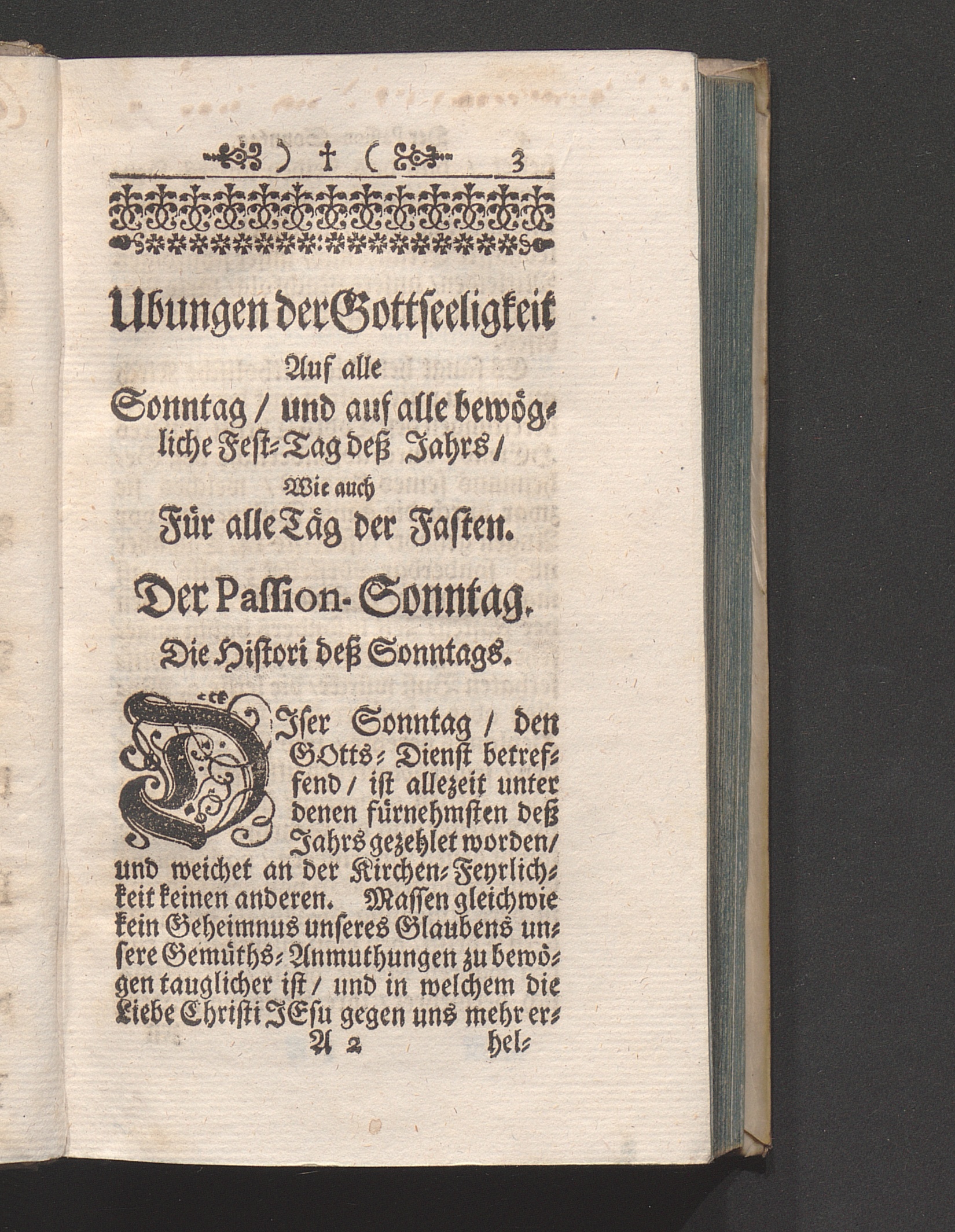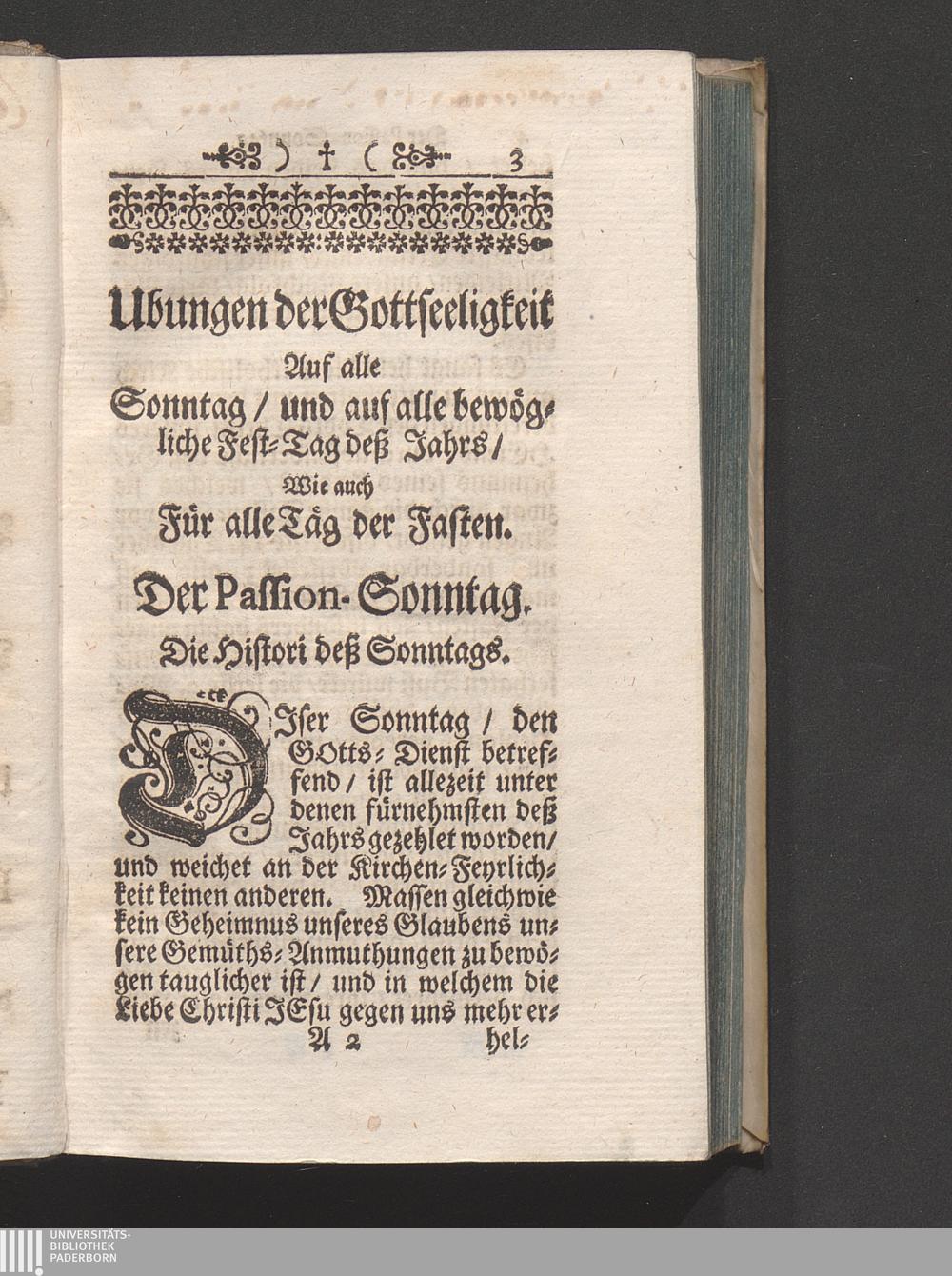 Der Passion-Sonntag/ dessen Histori/ das ist/ sein Ursprung und Namen. Von dem Eingang der heiligen Meß. Von der Epistel/ und von dem Evangelio. Die Epistel. Anmerckungen. Evangelium. Betrachtung von der Unglückseeligkeit/ wan sich Christus Jesus uns entziehet. Andächtiges Schuß-Gebett. Andachts-Ubung.