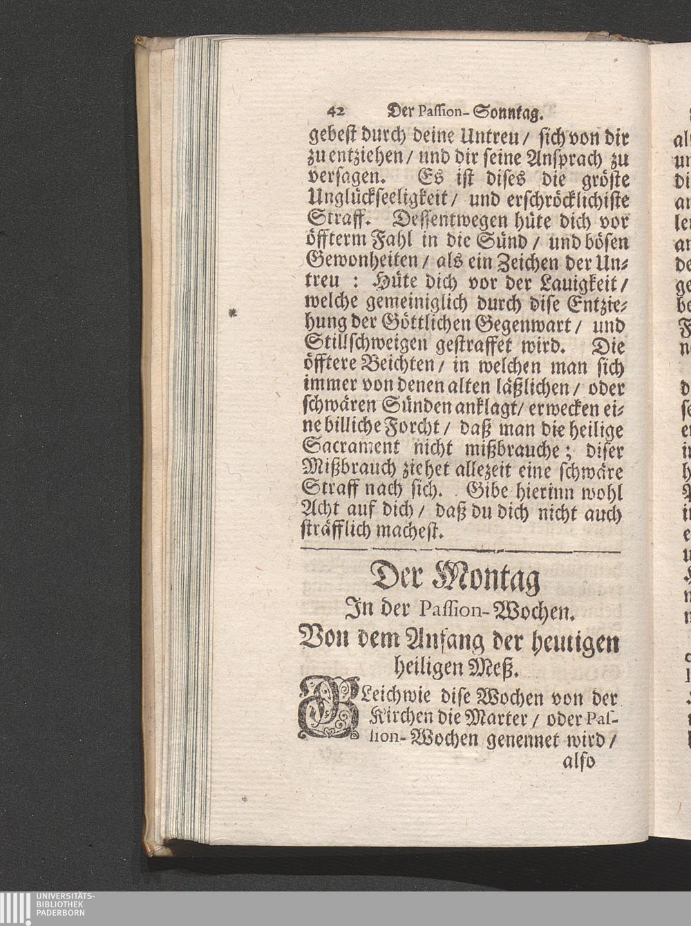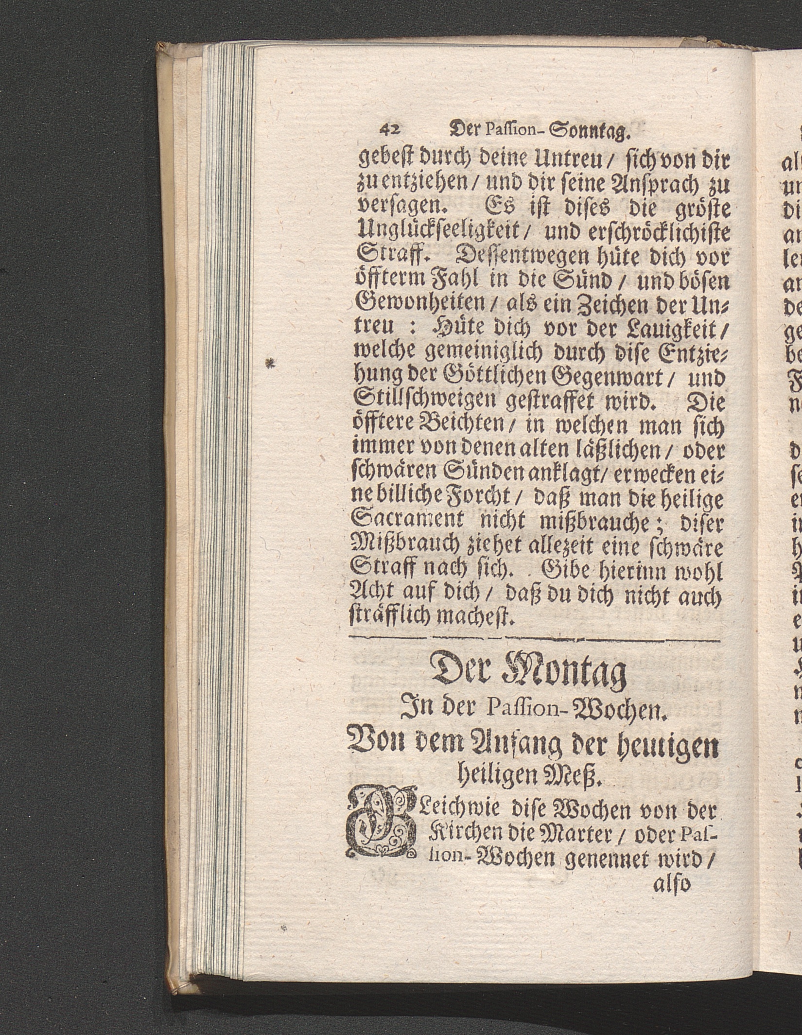Der Montag in der Passion-Wochen. Von dem Anfang der heiligen Meß. Die Epistel. Anmerckungen. Evangelium. Betrachtung von dem sonderbaren Gericht.