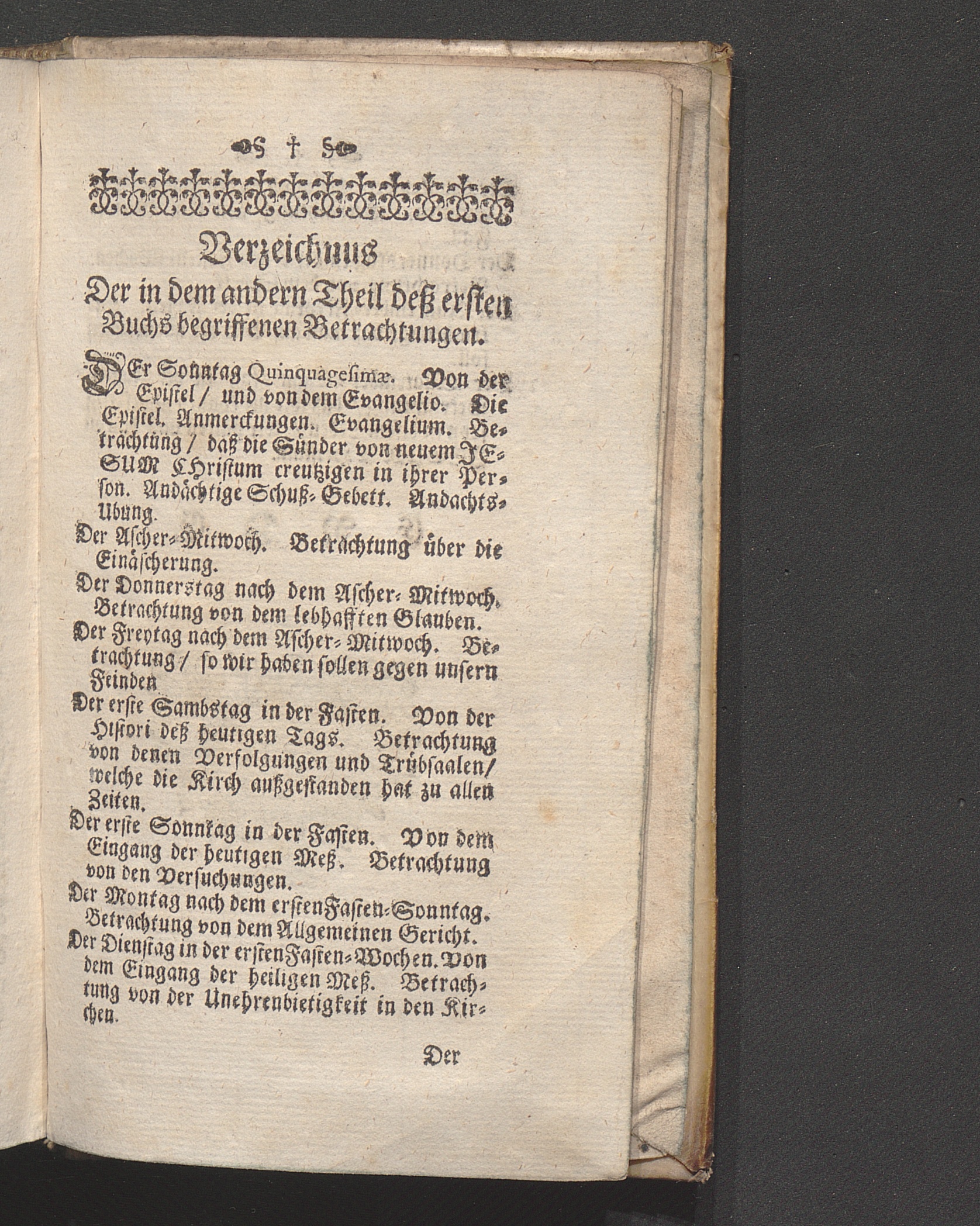 Der Sonntag Quinquagesimæ. Von der Epistel/ und von dem Evangelio. Die Epistel. Anmerckungen. Evangelium. Betrachtung/ daß die Sünder von neuem Jesum Christum creutzigen in ihrer Person. Andächtige Schuß-Gebett. Andachts-Ubung.