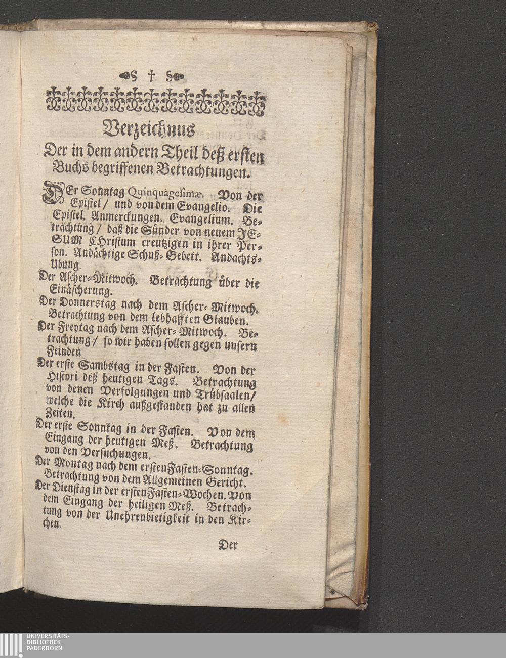 Verzeichnus Der in dem andern Theil deß ersten Buchs begriffenen Betrachtungen.