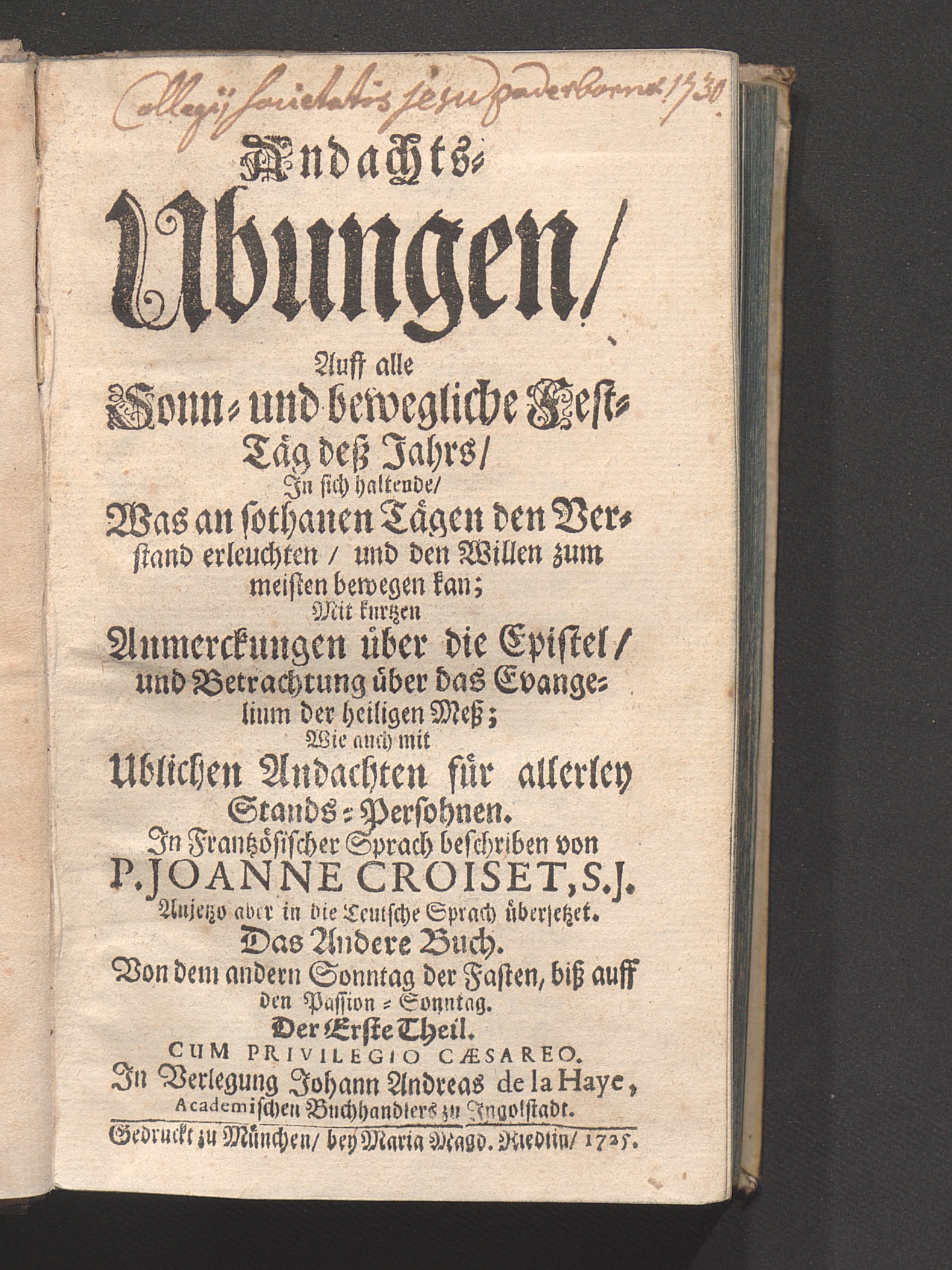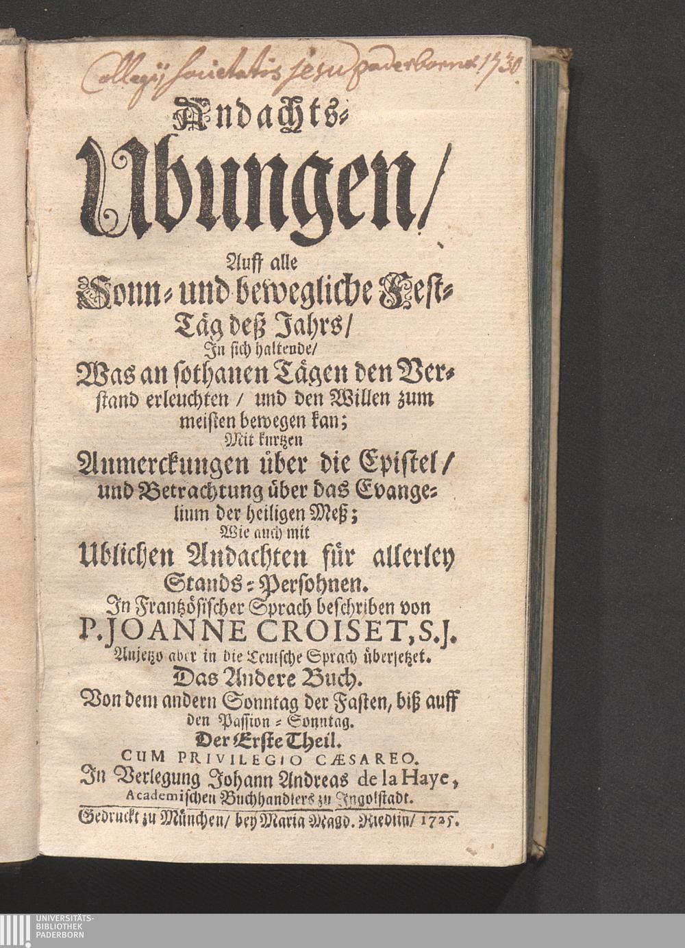 Andachts-Ubungen/ Auf alle Sonn- und bewögliche Fest-Täg deß Jahrs