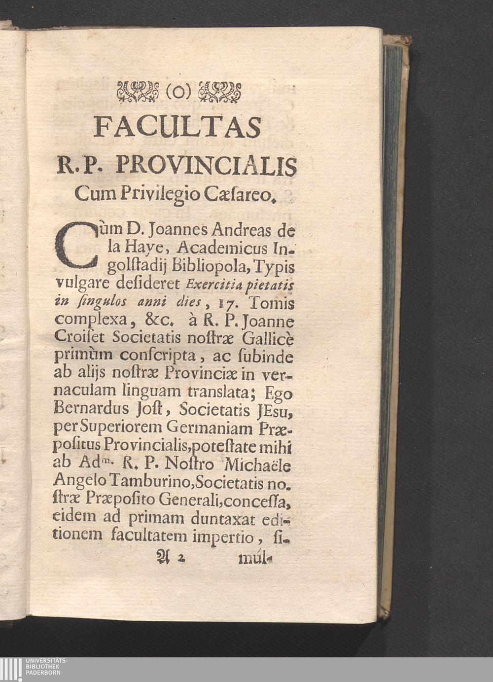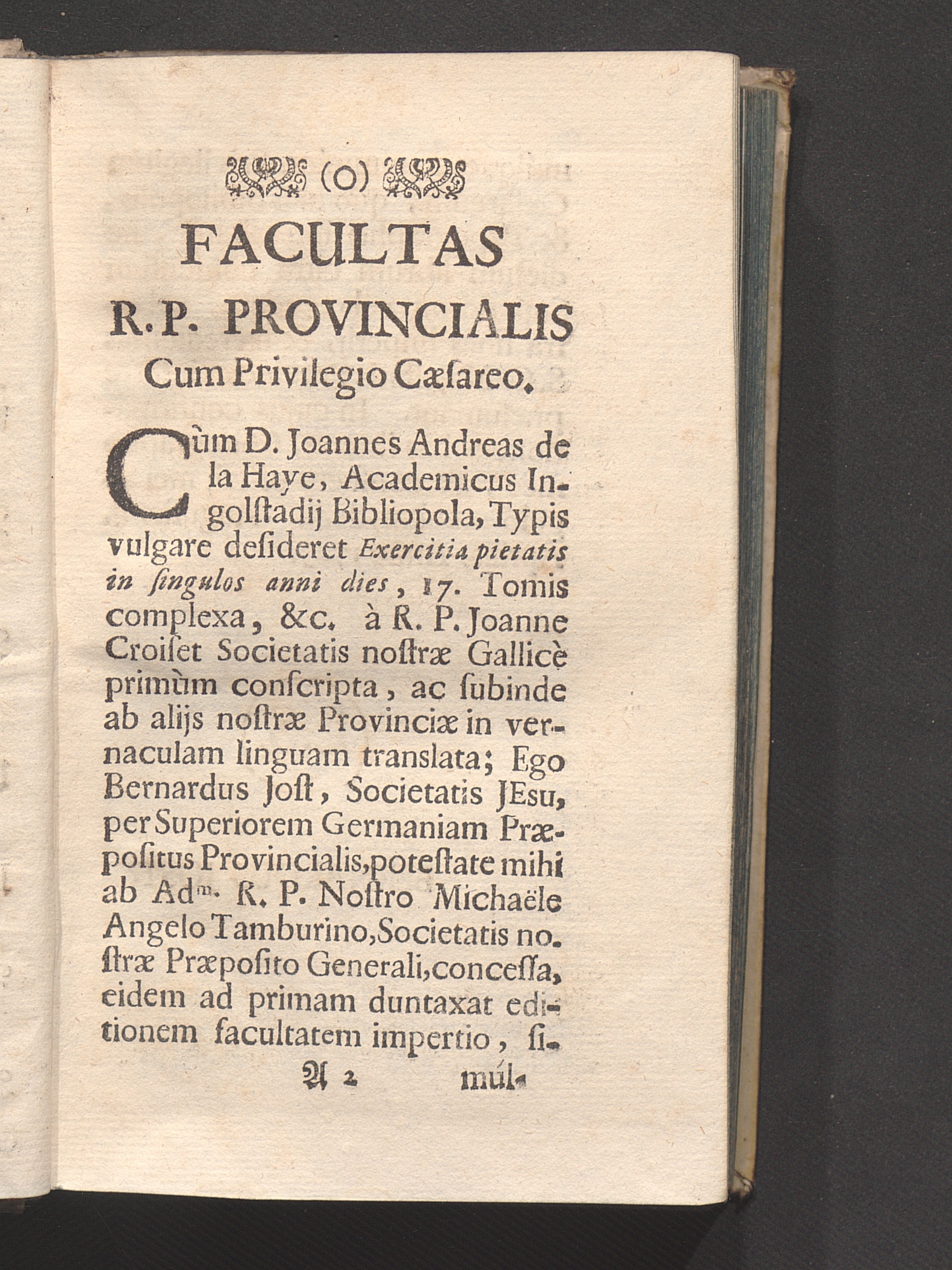 Facultas R. P. Provincialis Cum Privilegio Cæsareo.