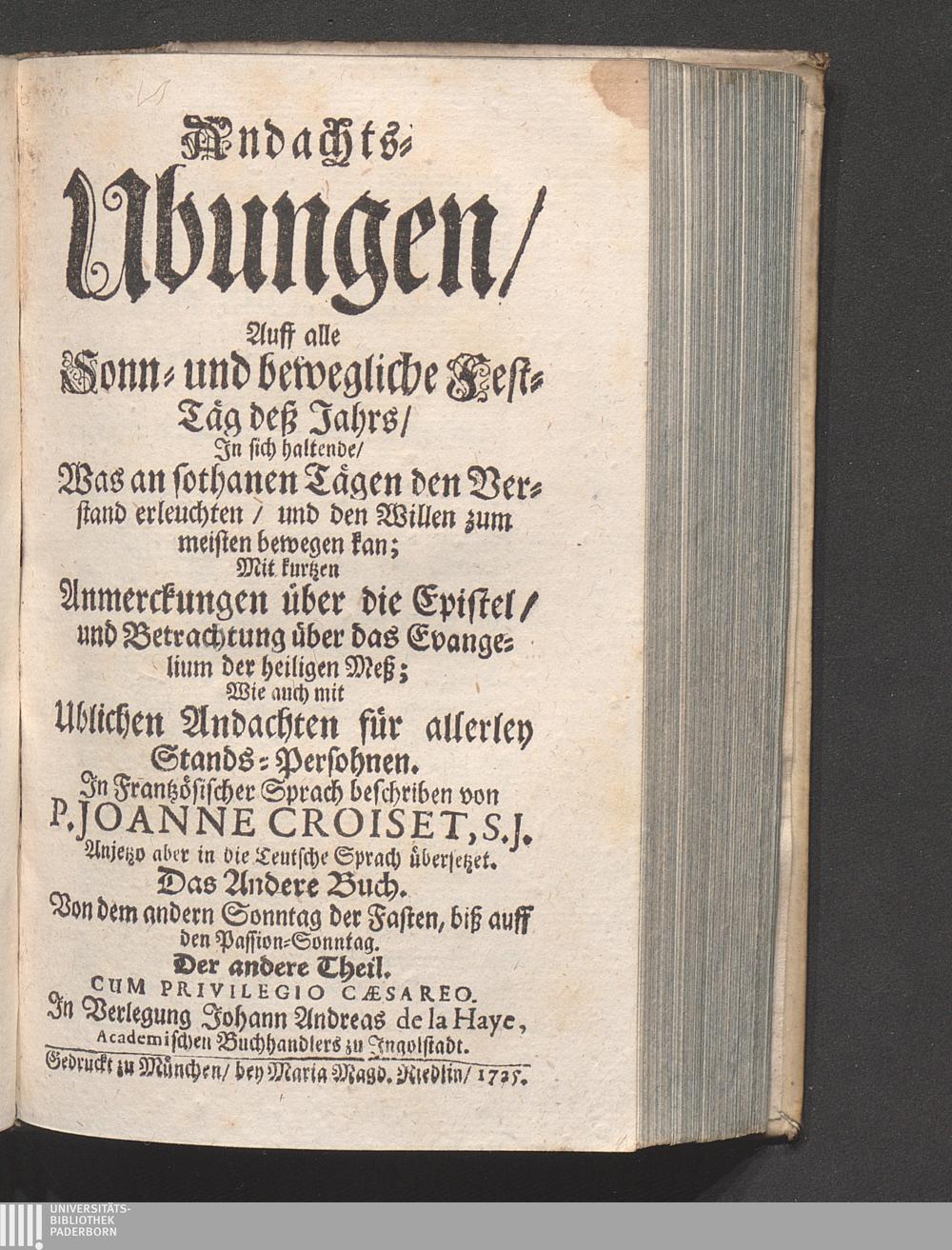 Andachts-Ubungen/ Auf alle Sonn- und bewögliche Fest-Täg deß Jahrs