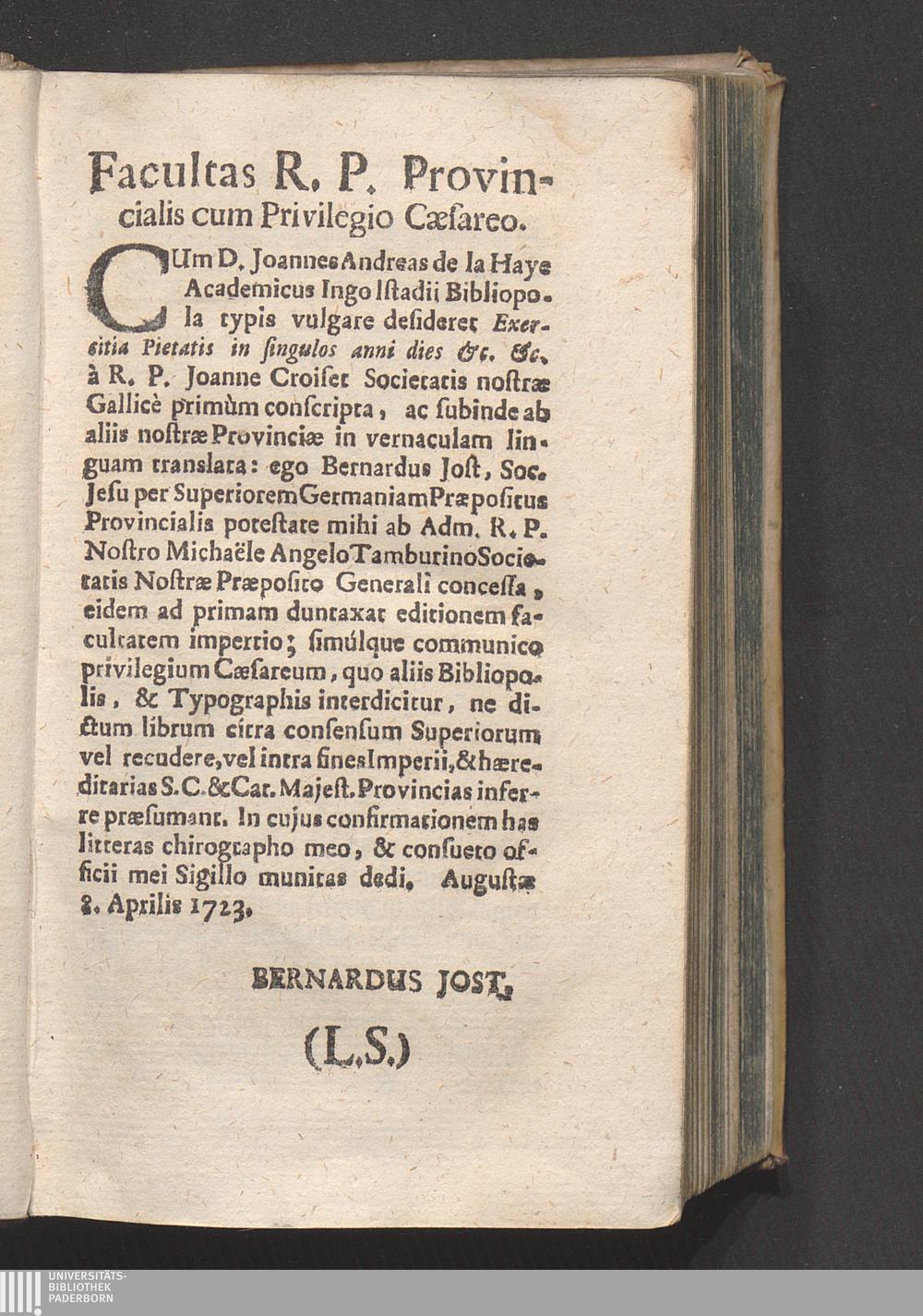 Facultas R. P. Provincialis cum Privilegio Cӕsareo.