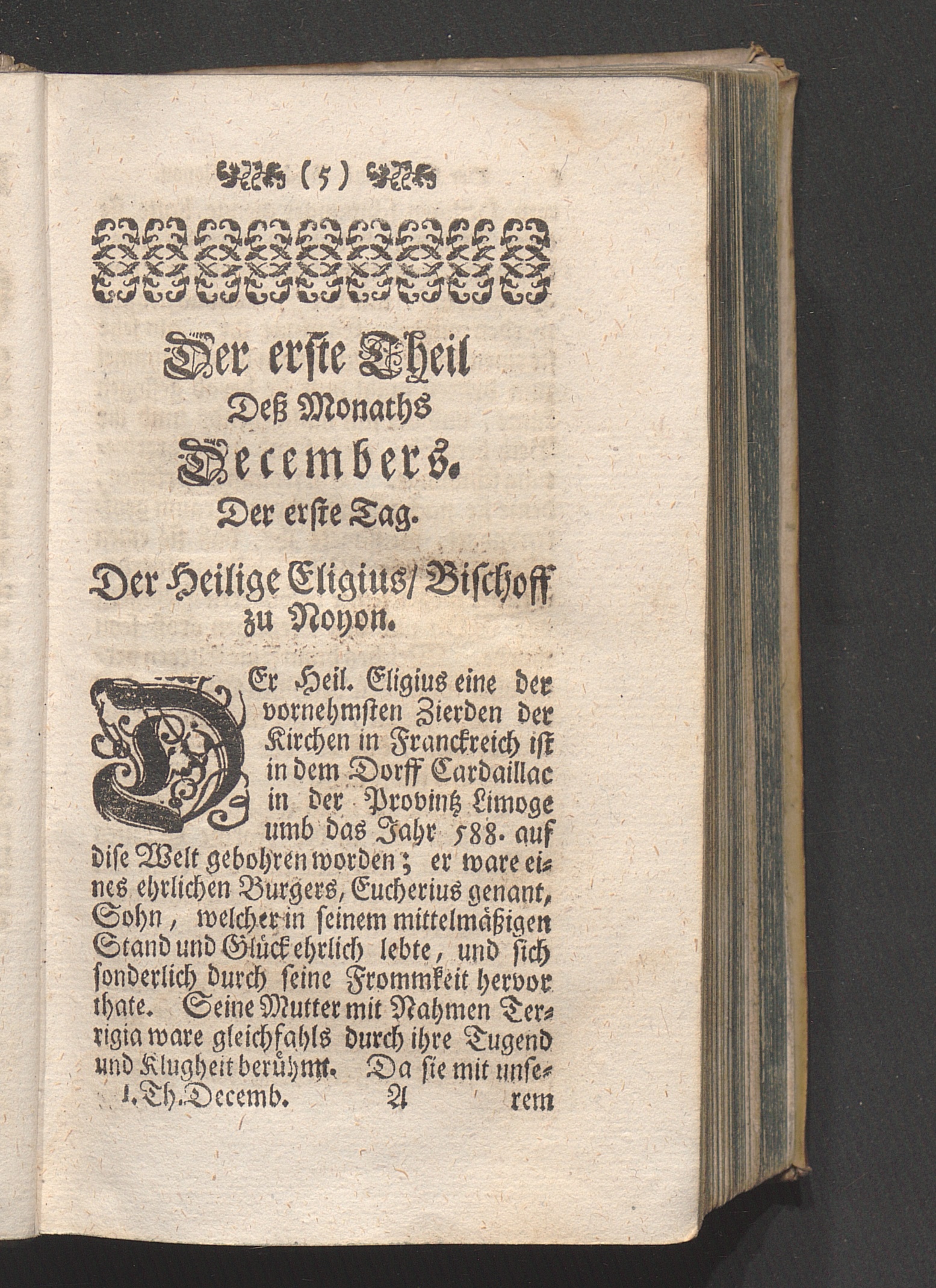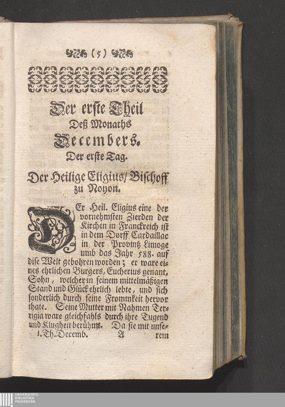 Der erste Tag. Der Heil. Eligius Bischoff zu Noyon. Betrachtung von denen jenigen/[...]