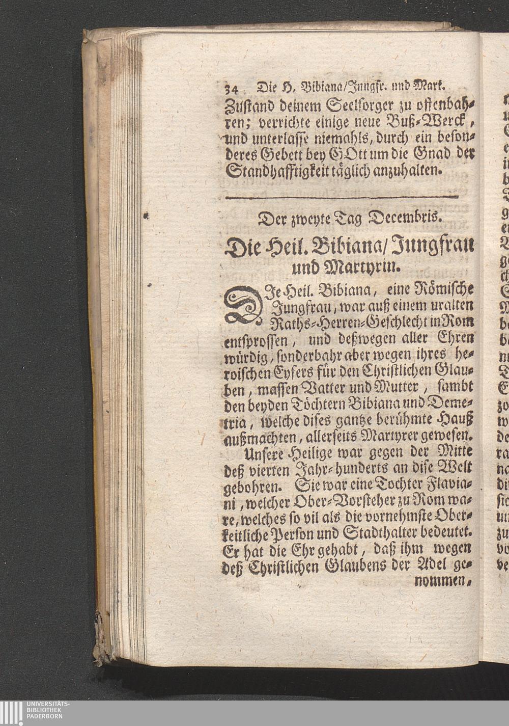 2. Die Heil. Bibiana/ Jungfrau und Martyrin. Betrachtung von der ewigen Glückseeligkeit.[...]