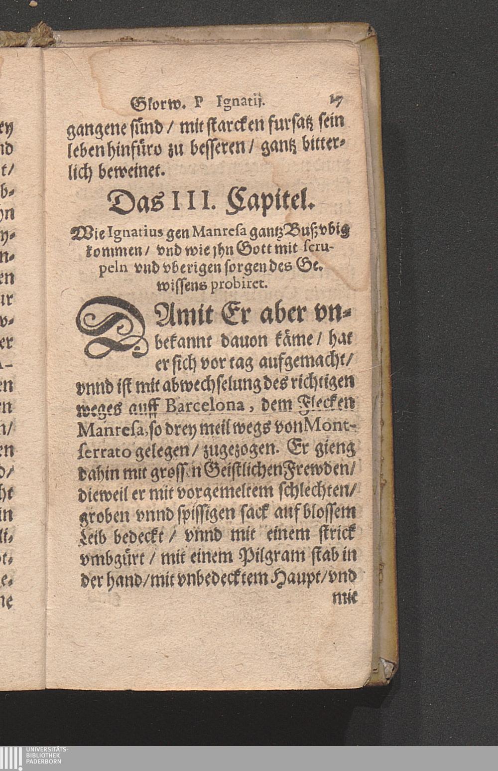 Kurtzer Jnnhalt des Lebens Des Ehr: vnd Glorwürdigen Patris Ignatii von Loyola, Ersten Stiffters der Religion vnd Societet Iesv : Erstlich von P. Petro Ribadenera in Spanischer sprach beschrieben: nachmals in die Welsche/ ferrner in die Frantzösische vnd aus dieser in Teutsche sprach versetzt
