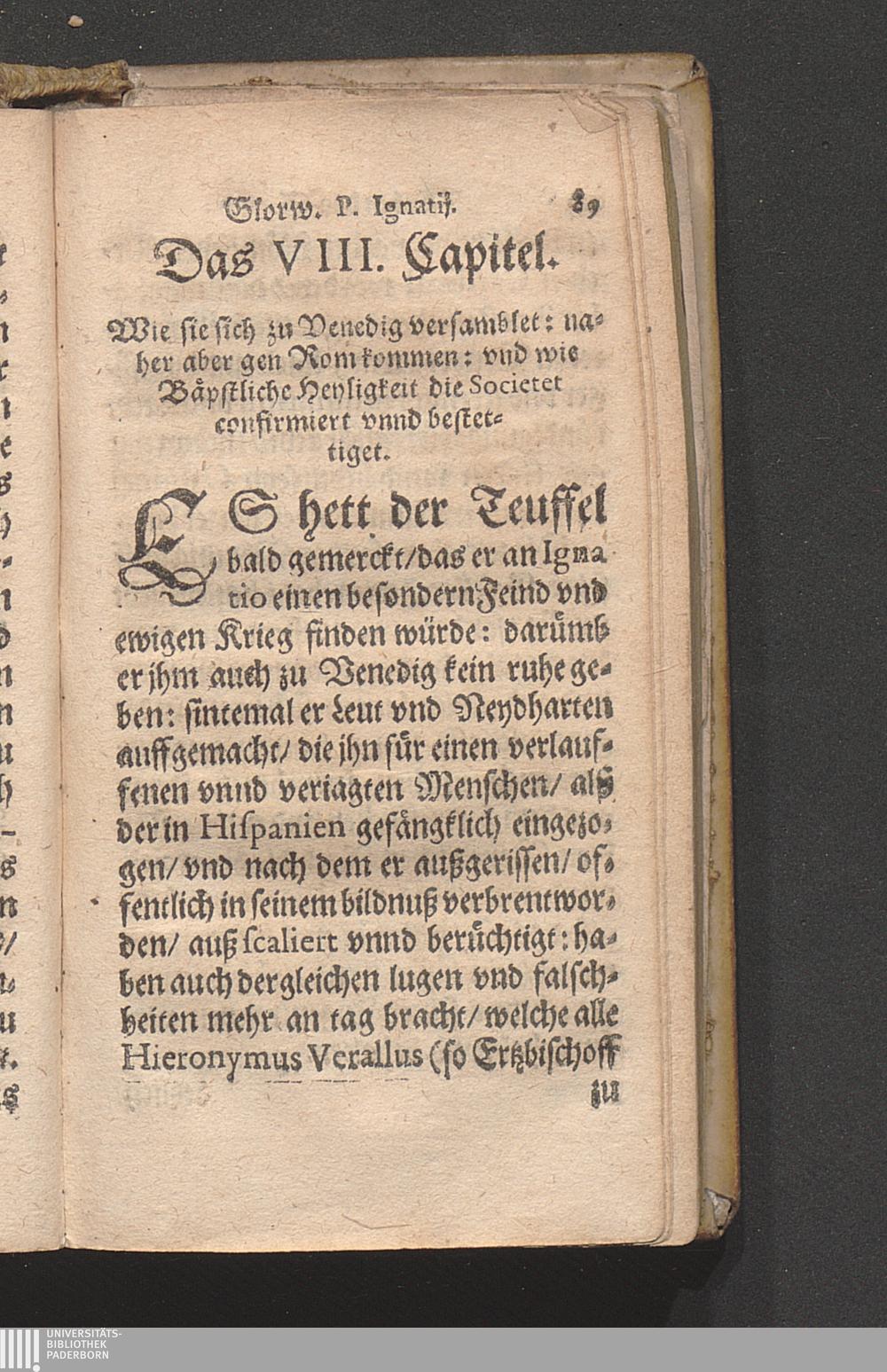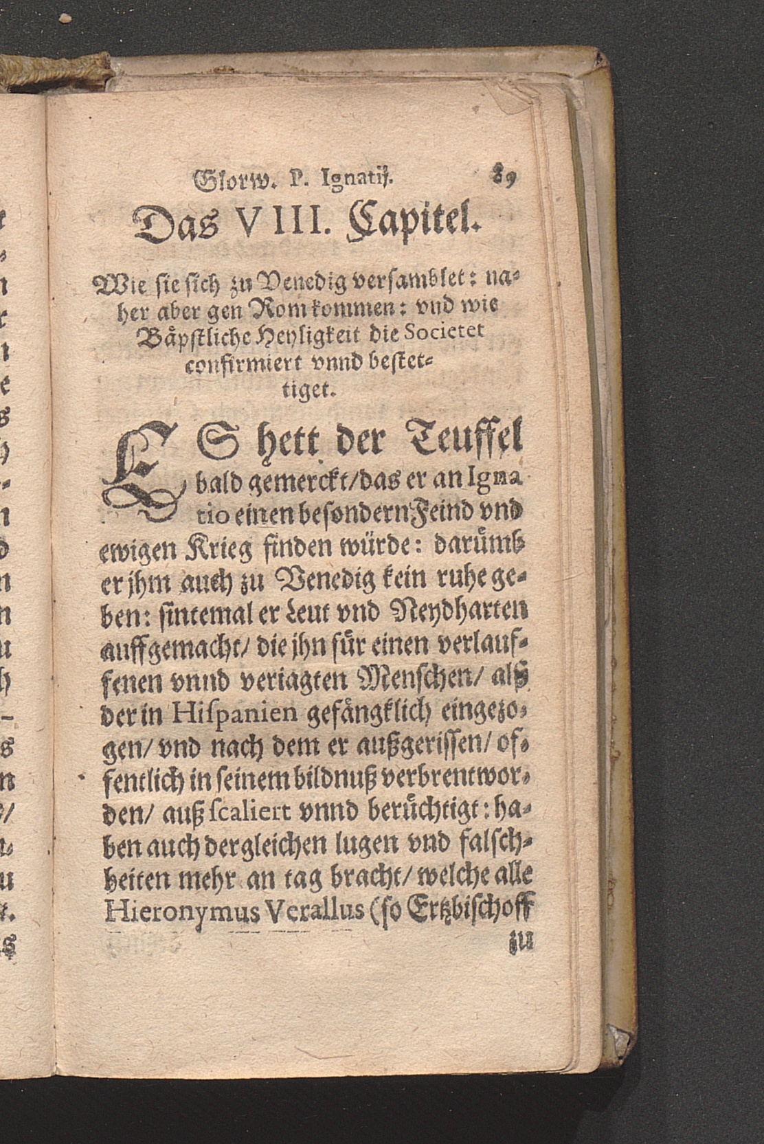 Kurtzer Jnnhalt des Lebens Des Ehr: vnd Glorwürdigen Patris Ignatii von Loyola, Ersten Stiffters der Religion vnd Societet Iesv : Erstlich von P. Petro Ribadenera in Spanischer sprach beschrieben: nachmals in die Welsche/ ferrner in die Frantzösische vnd aus dieser in Teutsche sprach versetzt