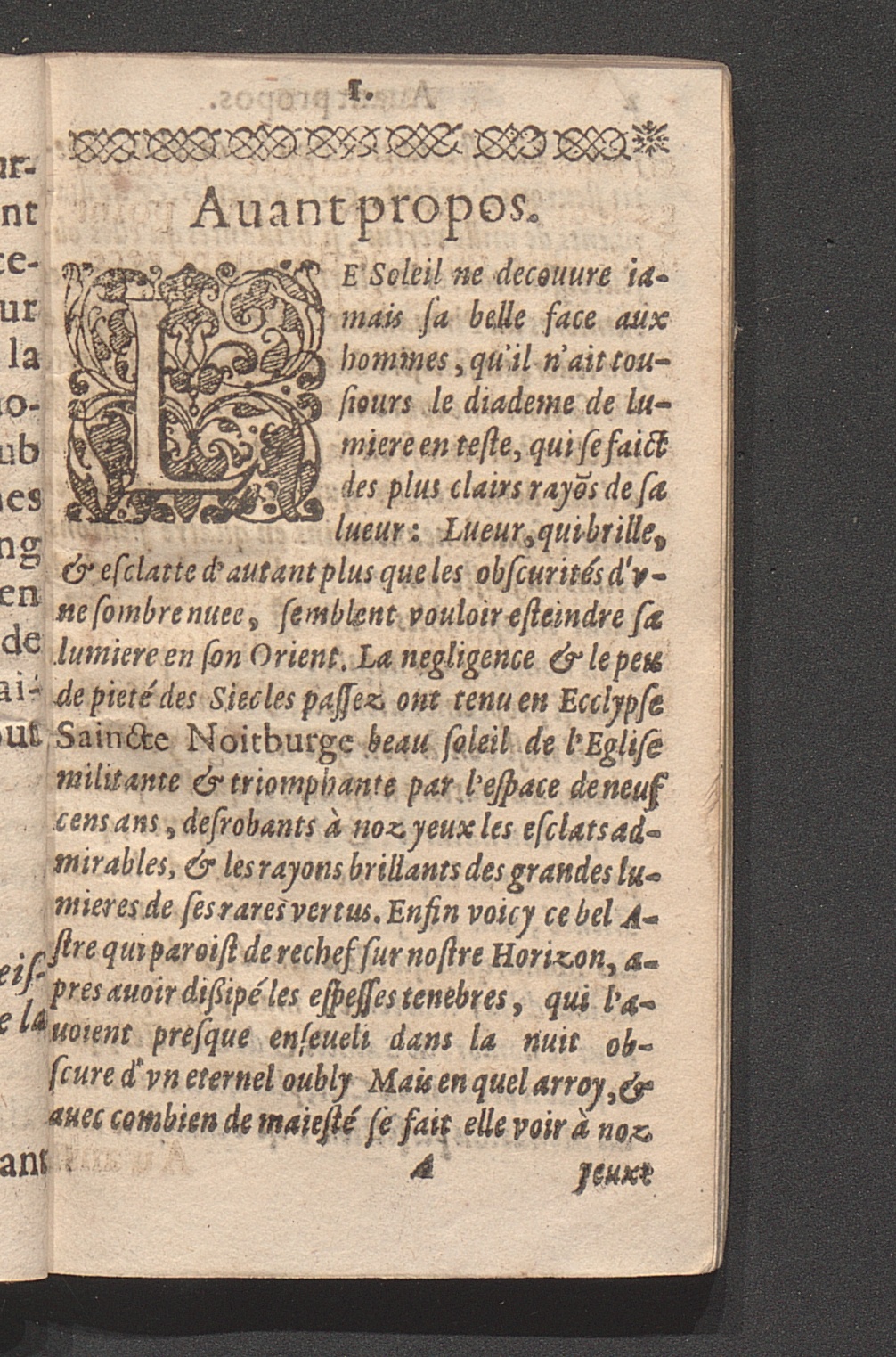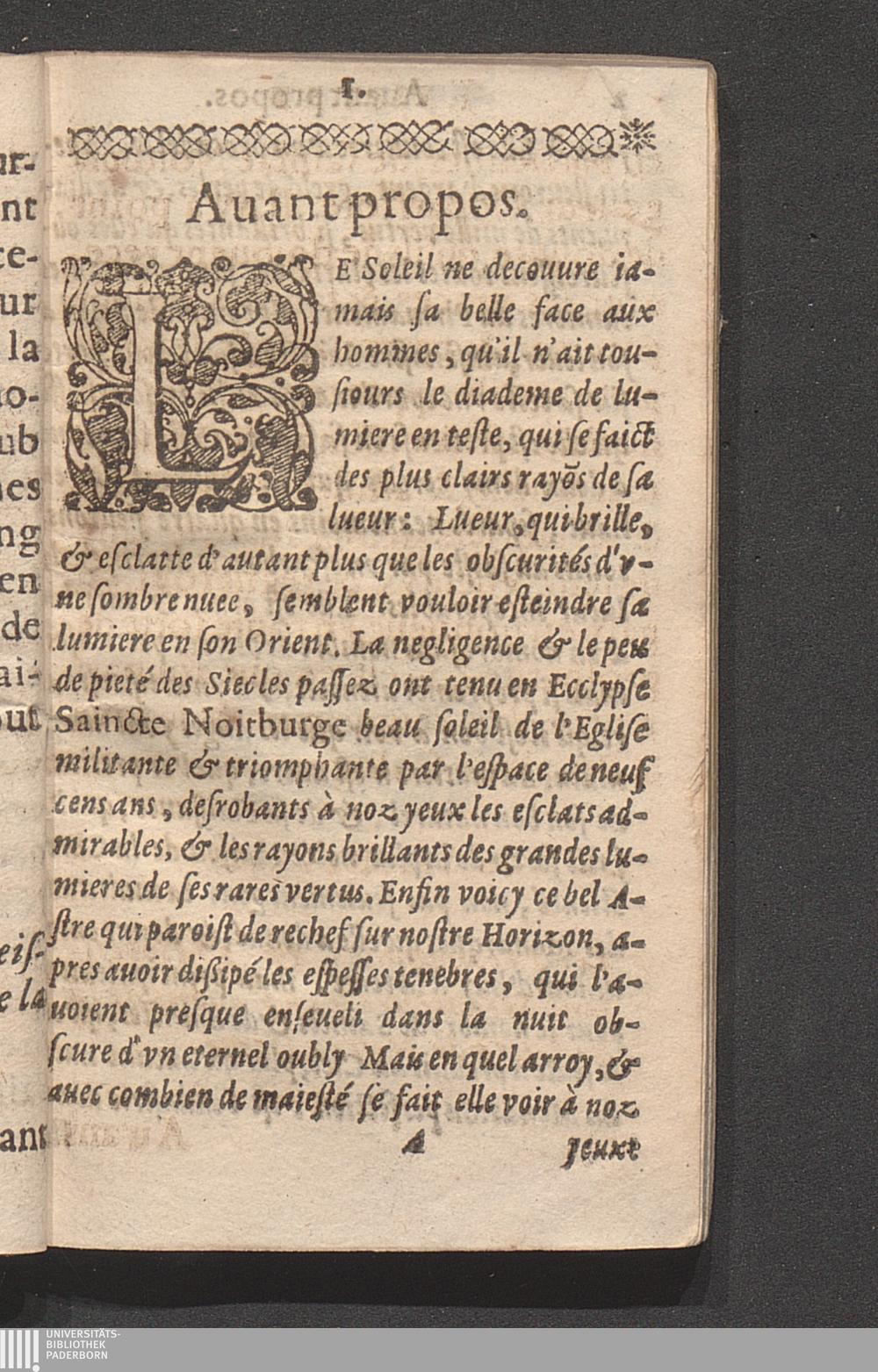 La Vie, Et Miracles Admirables De S. Noitbvrge Fille de Pepin Heristal, & de S. Plectrvde Noble Tige des Serenissimes Maisons de Lorraine & de Bauieres : Le tout enrichi de plusieurs Discours spirituels, & de Documens salutairs, accompagnés de rares Exemples pour l'instruction des ames deuotes / Fait par le P. N. A. D. L. C. D. I.