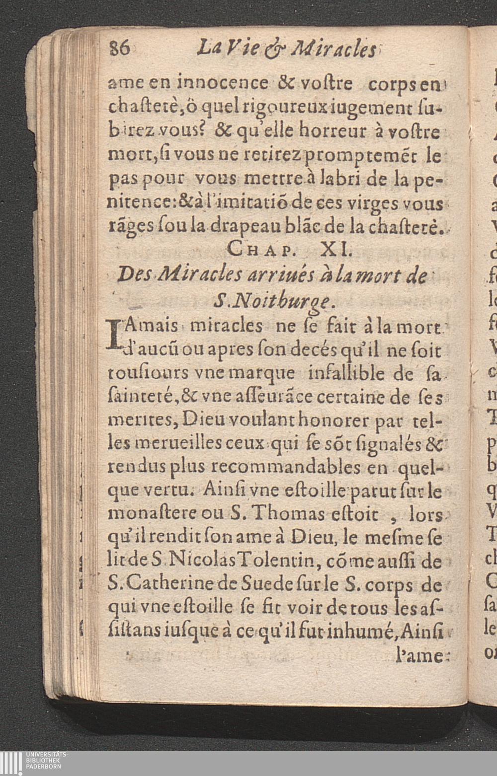 La Vie, Et Miracles Admirables De S. Noitbvrge Fille de Pepin Heristal, & de S. Plectrvde Noble Tige des Serenissimes Maisons de Lorraine & de Bauieres : Le tout enrichi de plusieurs Discours spirituels, & de Documens salutairs, accompagnés de rares Exemples pour l'instruction des ames deuotes / Fait par le P. N. A. D. L. C. D. I.