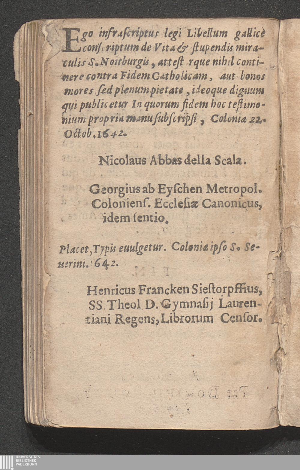 La Vie, Et Miracles Admirables De S. Noitbvrge Fille de Pepin Heristal, & de S. Plectrvde Noble Tige des Serenissimes Maisons de Lorraine & de Bauieres : Le tout enrichi de plusieurs Discours spirituels, & de Documens salutairs, accompagnés de rares Exemples pour l'instruction des ames deuotes / Fait par le P. N. A. D. L. C. D. I.