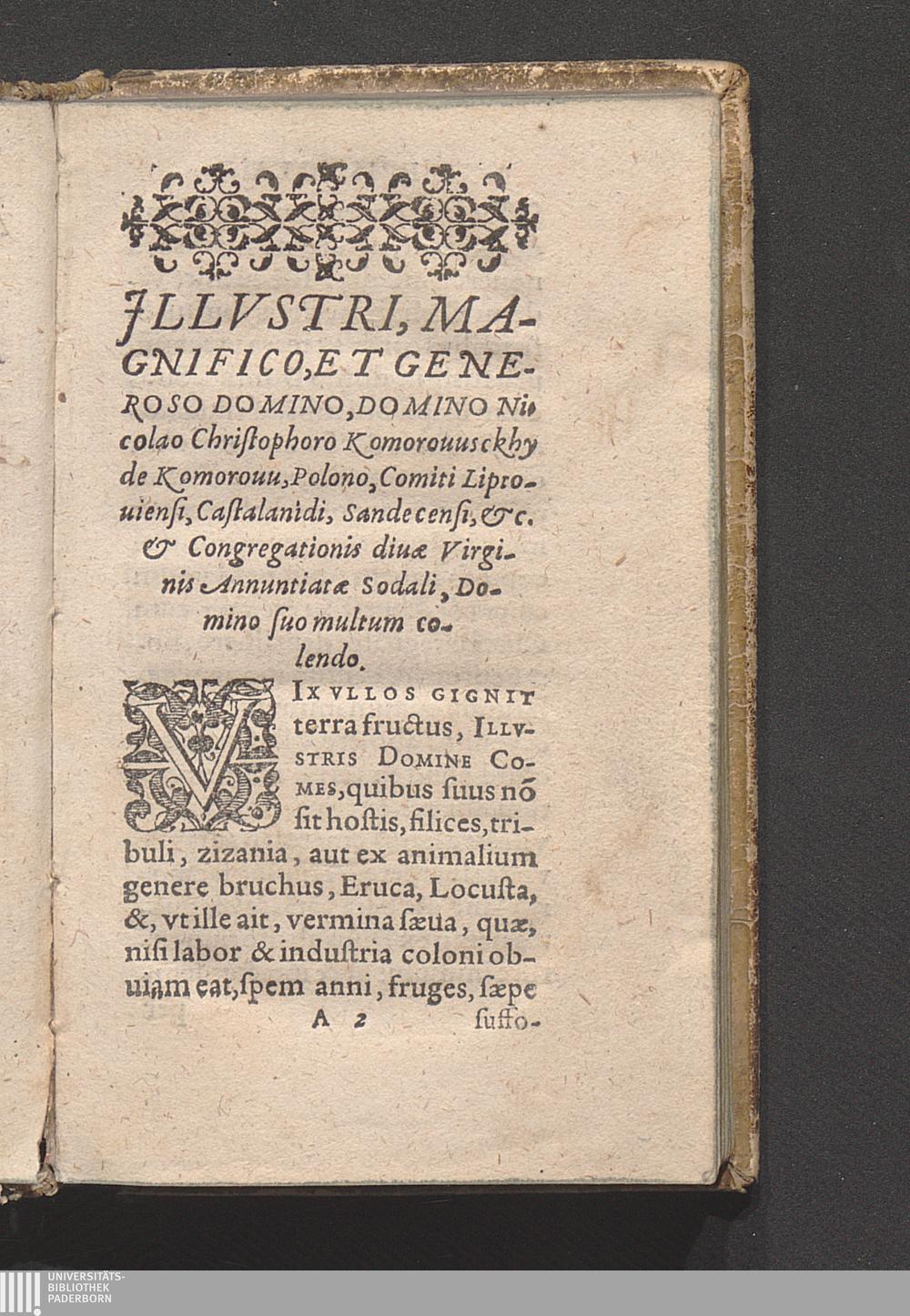 Jllvstri, Magnifico, Et Generoso Domino, Domino Nicolao Christophoro Komorouusckhy de Komorouu, Polono, Comiti Liptouiensi, Castalanidi, Sandecensi, &c. & Congregationis diuæ Virginis Annuntiatæ Sodali, Domino suo multum colendo.
