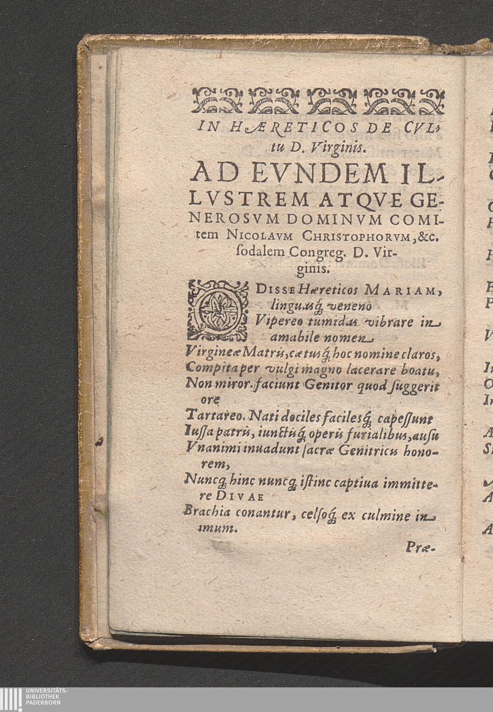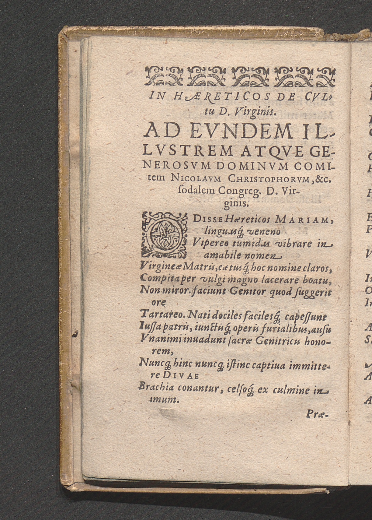 In Hæreticos De Cvltu D. Virginis. Ad Evndem Illvstrem Atqve Generosvm Dominvm Comitem Nicolavm Christophorvm, &c. sodalem Congreg. D. Virginis.