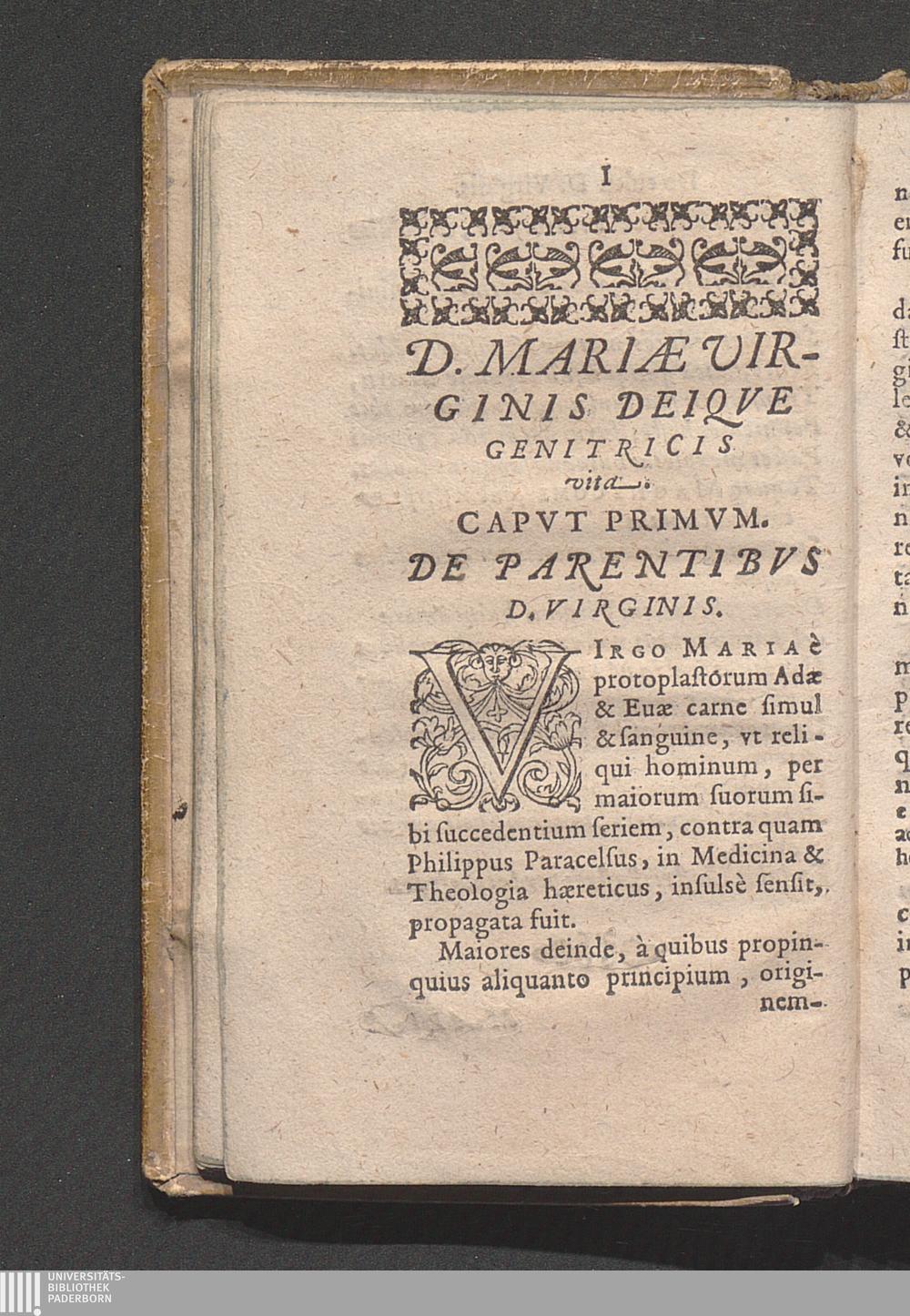 Capvt Primvm. De Parentibvs D. Virginis.