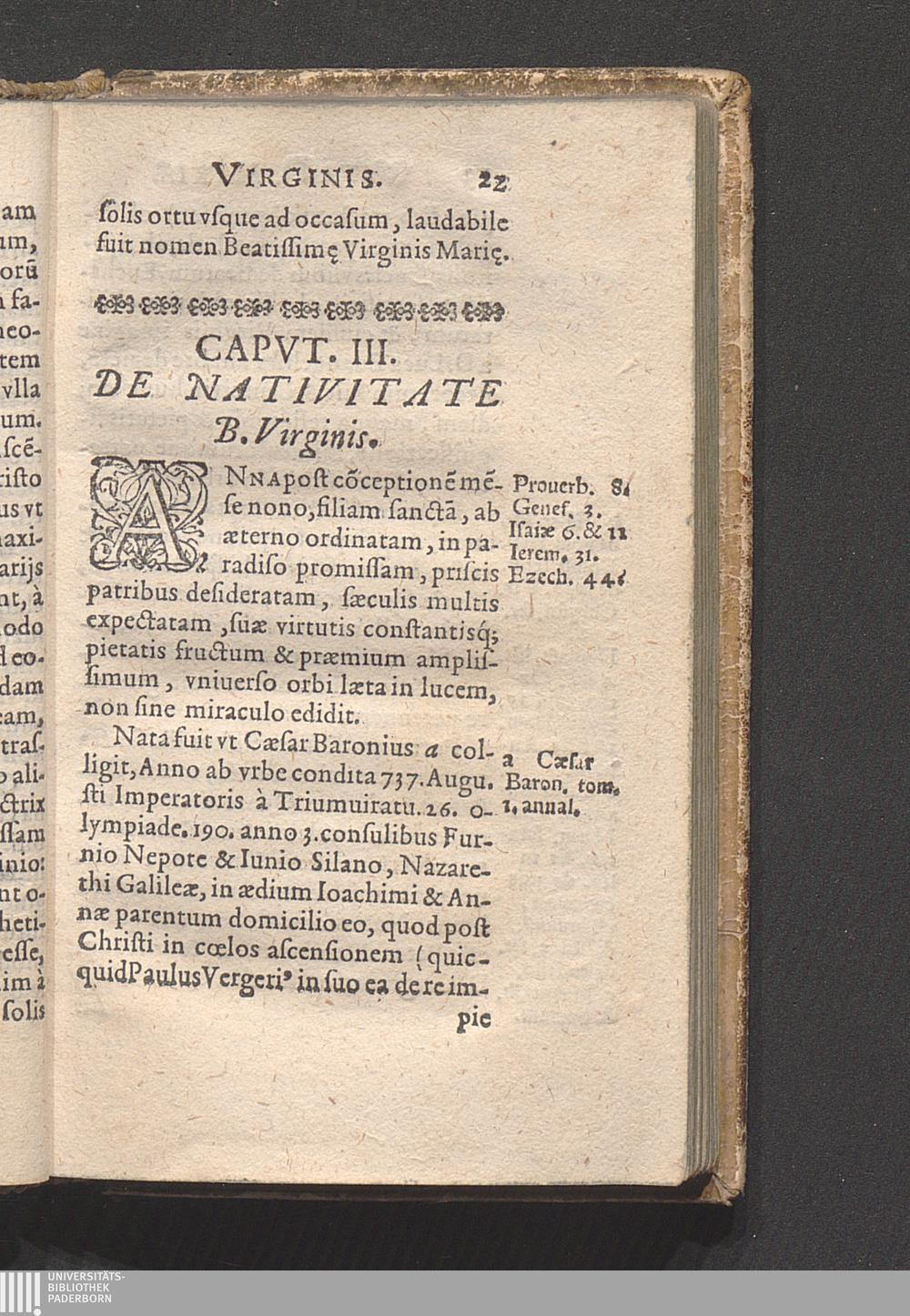 Capvt. III. De Nativitate B. Virginis.
