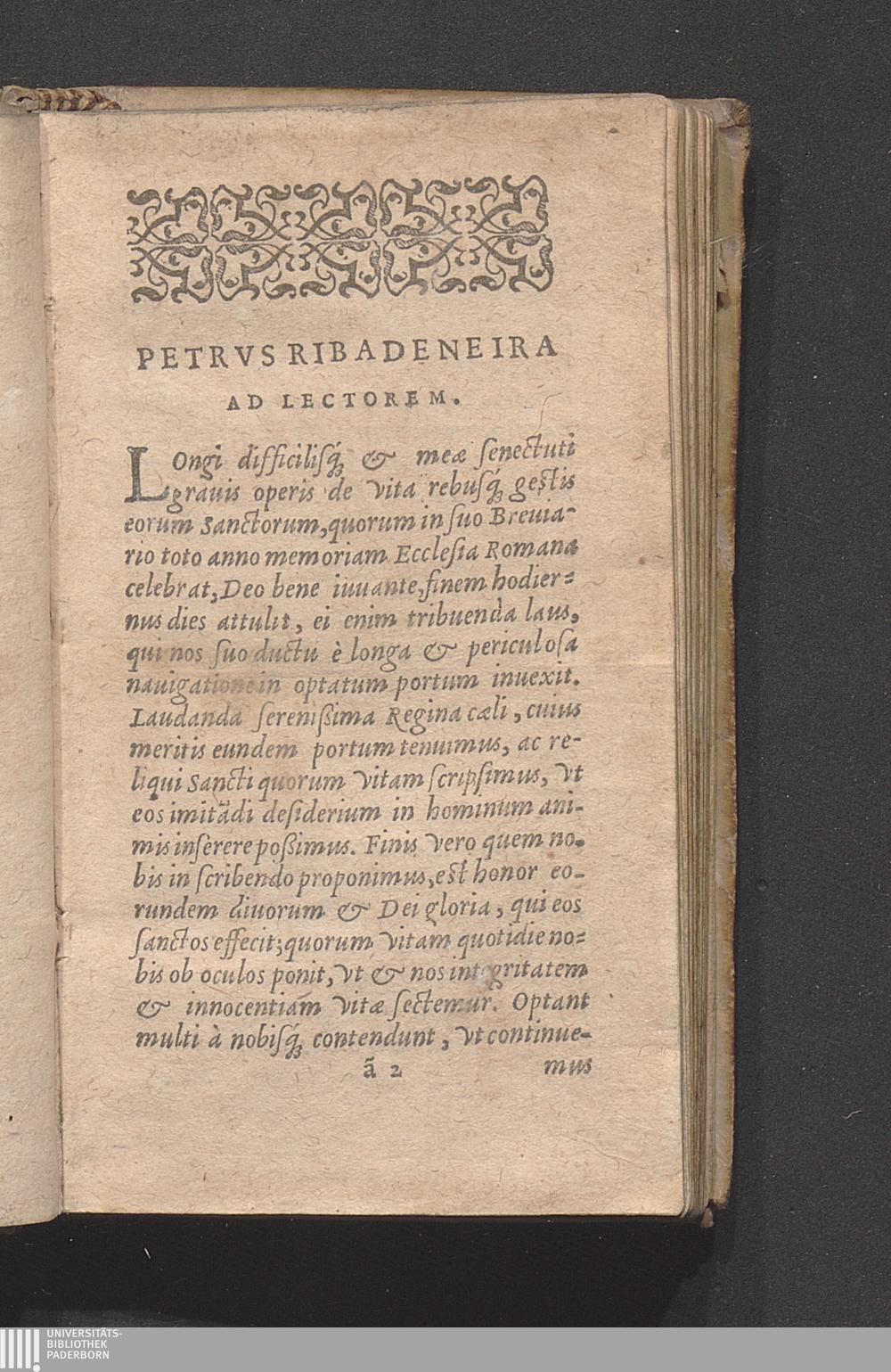 Vita B. P. Ignatii Qui Religionem Clericorum Societatis Iesv instituit / Nuper à R. P. Petro Ribadeneira eiusdem Societatis Hispanicè conscripta, Et ab eodem rebus memorabilibus illustribusque miraculis ita locupletata, vt alia ab illa priore quam ante aliquot annos in lucem edidit videri possit ; A P. Gaspare Qvartemont eiusdem Societatis latiné conuersa