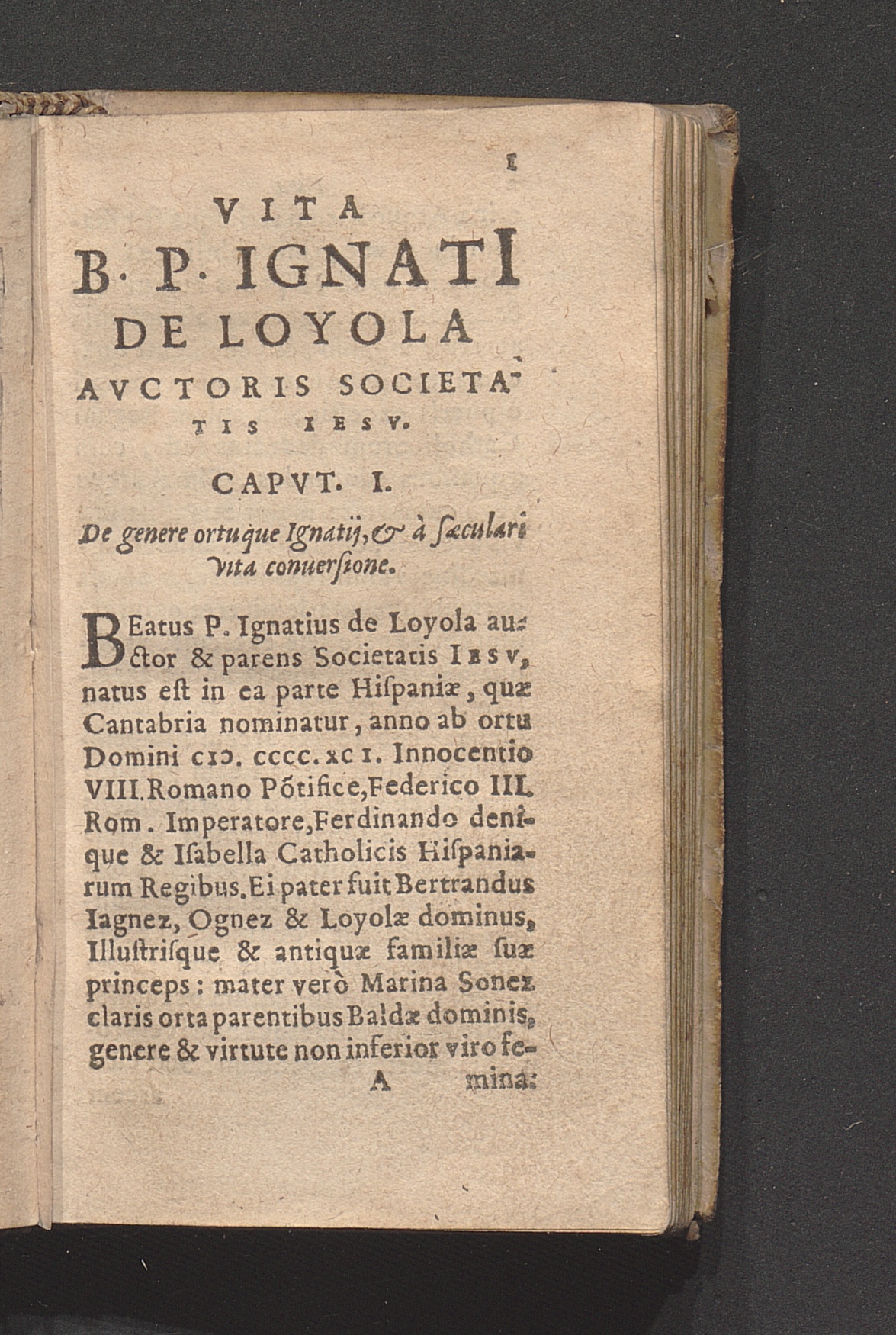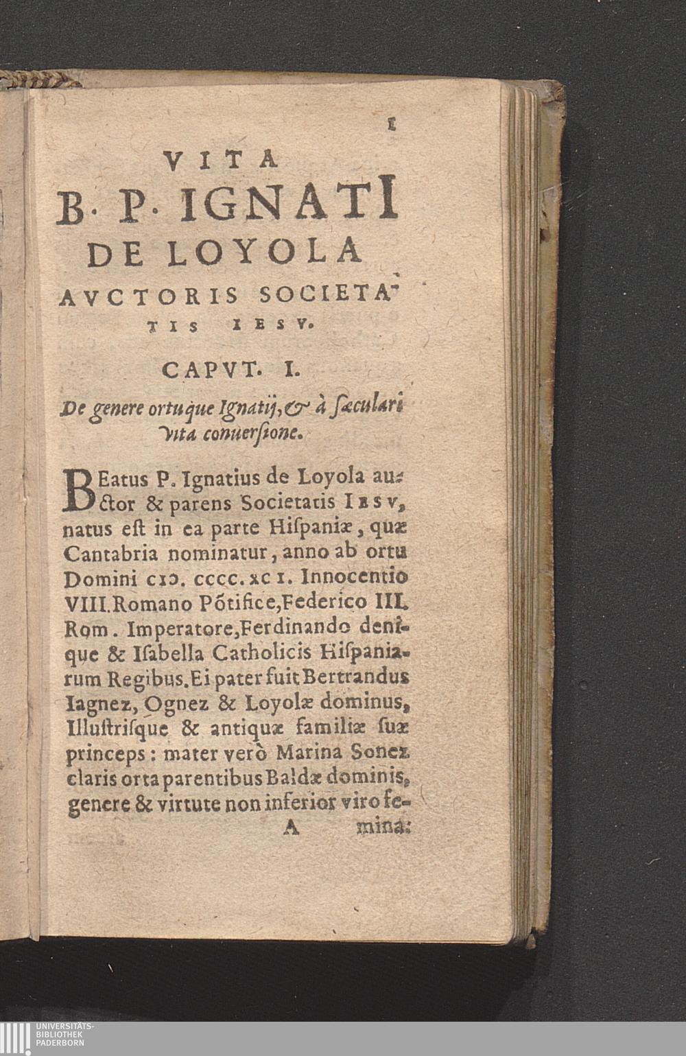 Vita B. P. Ignatii Qui Religionem Clericorum Societatis Iesv instituit / Nuper à R. P. Petro Ribadeneira eiusdem Societatis Hispanicè conscripta, Et ab eodem rebus memorabilibus illustribusque miraculis ita locupletata, vt alia ab illa priore quam ante aliquot annos in lucem edidit videri possit ; A P. Gaspare Qvartemont eiusdem Societatis latiné conuersa