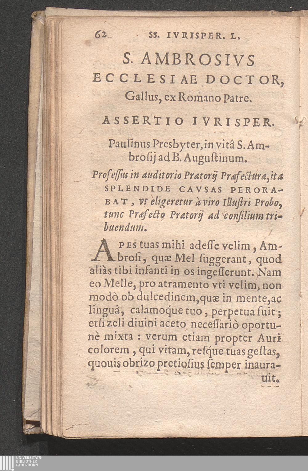 S. Ambrosivs Ecclesiae Doctor, Gallus, ex Romano Patre.